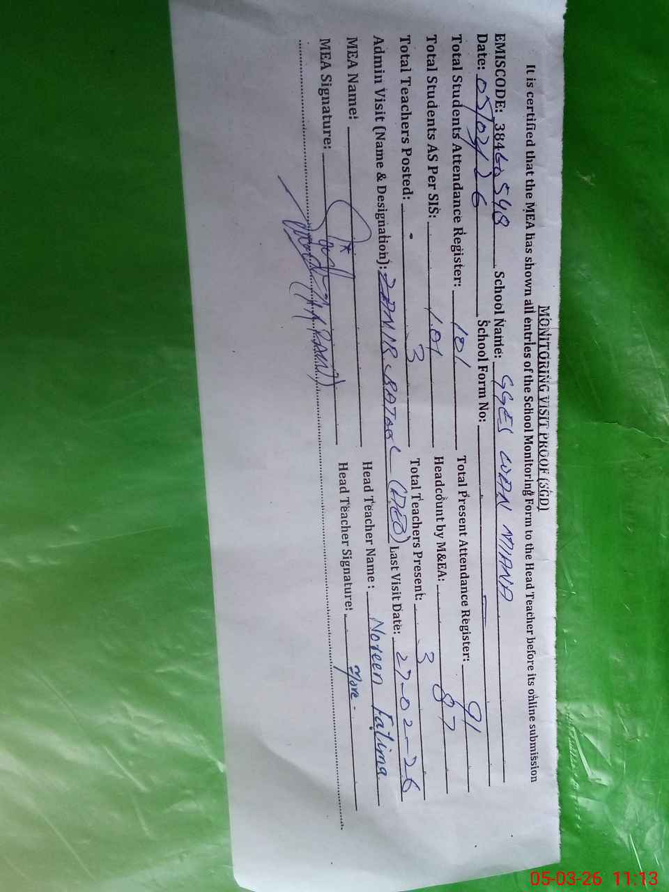 | Certified that this School was Inspected by the Undersigned MEA/DMO Today and the Information Stated Above is as Per Record. | |||||