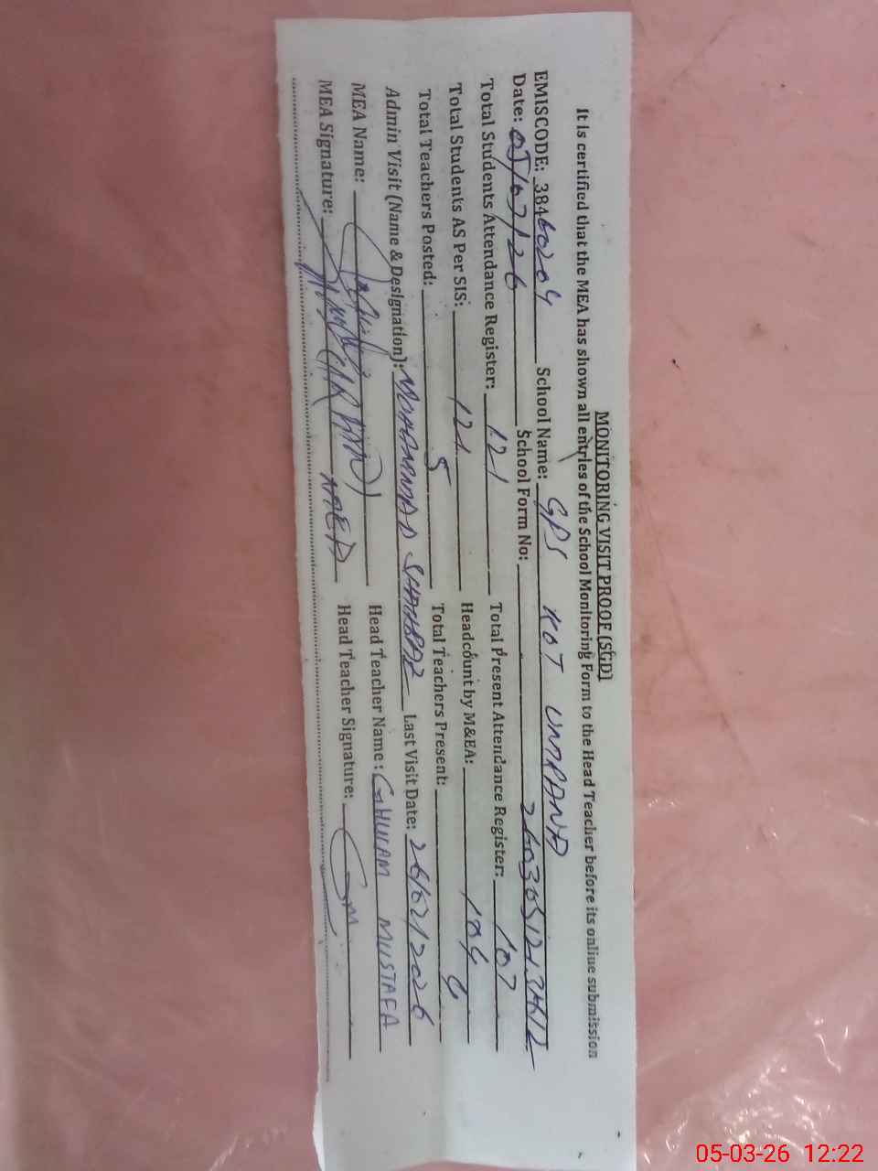 | EMIS Code: 38460204 | Name of School: GPS KOT UMRANA | |||
