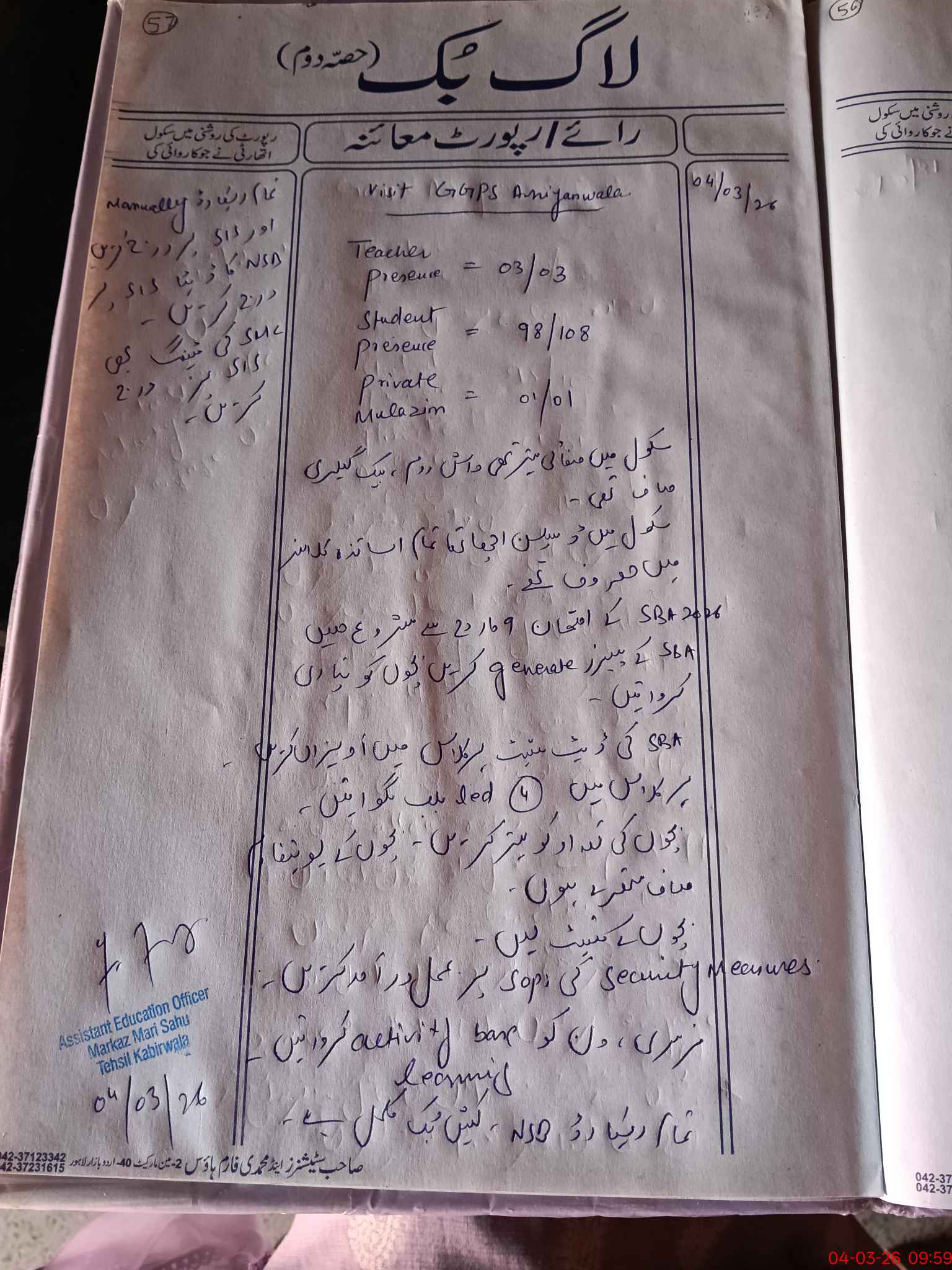 | EMIS Code: 36410361 | Name of School: GGPS ARRIYAN WALA, KABIRWALA | |||