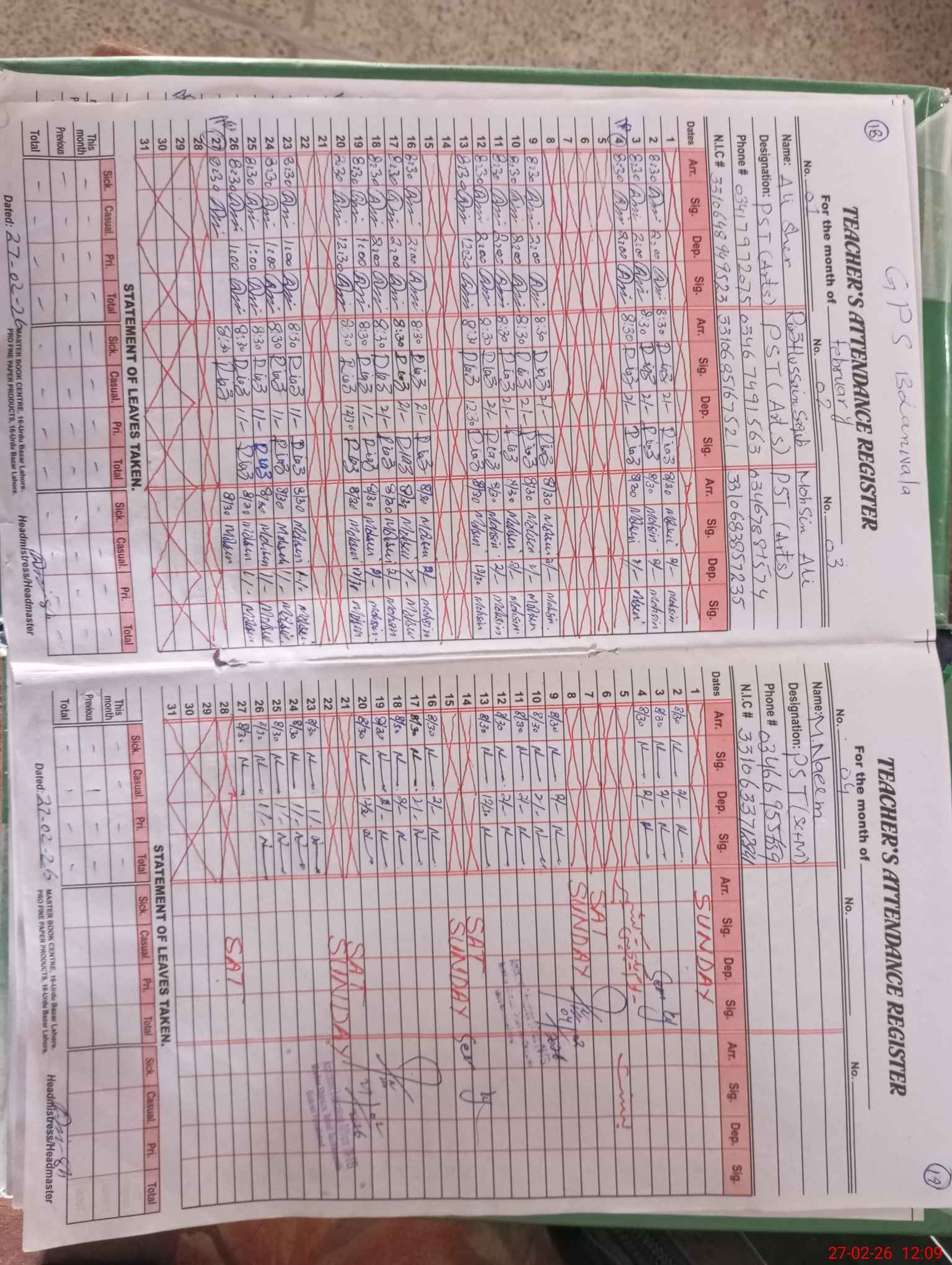 | Name: AL**** SH**** Designation: (School Headmaster's/Headmistress's) PST Phone/Cell Number: 03**** |
