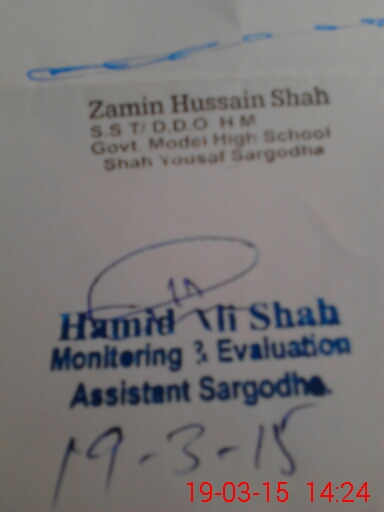| District: SARGODHA | Tehsil: SHAHPUR | Markaz: SECONDARY-WING | Level: High | |