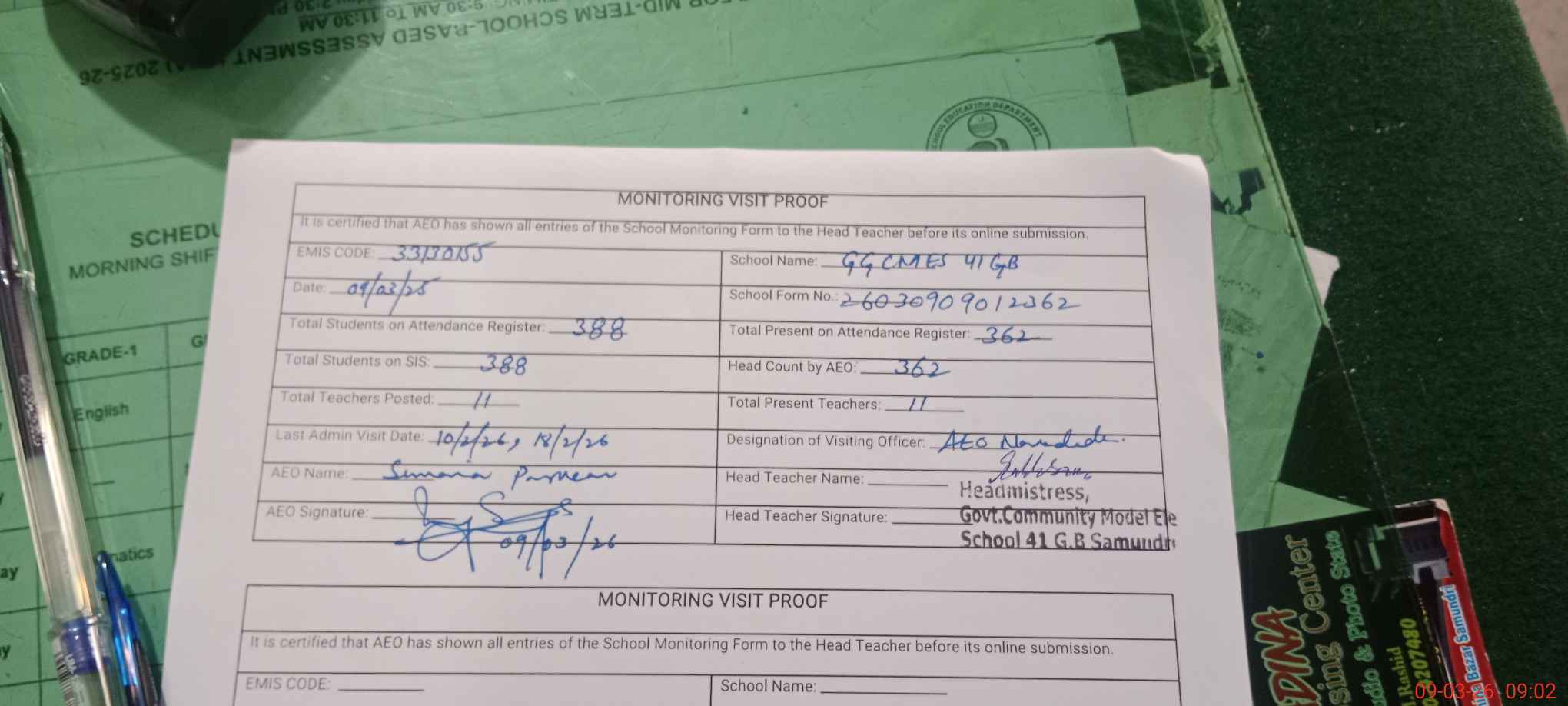 | EMIS Code: 33130155 | Name of School: GGCMES CHAK 41 GB SAMUNDRI | |||