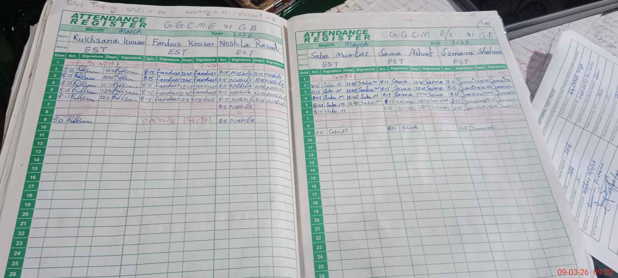 | 33**** | Fa**** Ka**** | EST General Arts | Regular | 0 | 0 | 0 | 0 | 0 | 0 | 0 | 0 | 0 | Exam Duty |