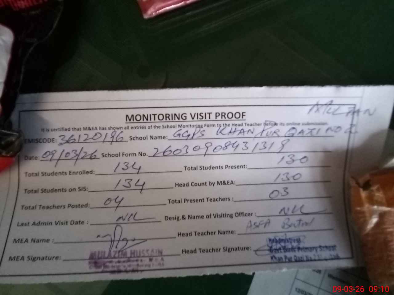| EMIS Code: 36120196 | Name of School: GGPS KHAN PUR QAZI NO.2 SHUJABAD | |||