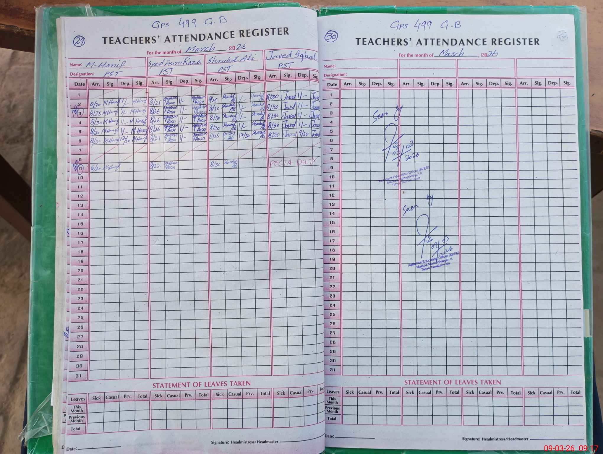 | 33**** | Ja**** Iq**** | PST Arts | Regular | 0 | 0 | 0 | 0 | 0 | 0 | 0 | 0 | 0 | Exam Duty |