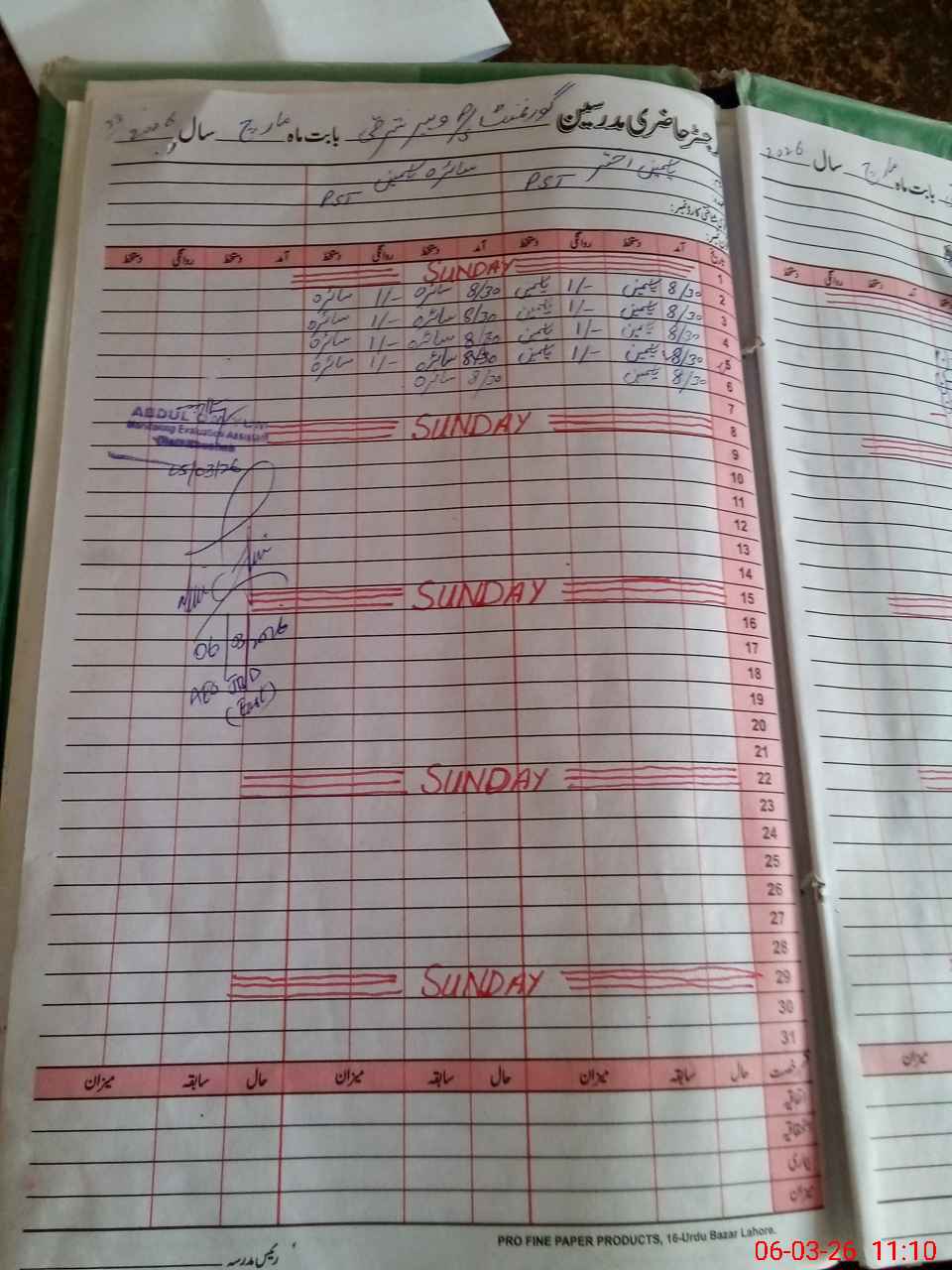 | CNIC | Full Name | Designation | R/C | Absence During Last Calender Month |