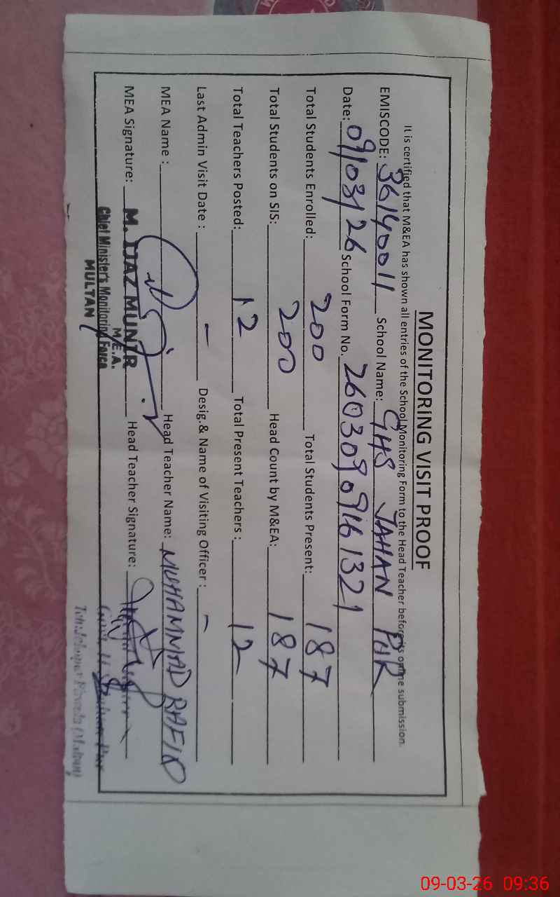 | EMIS Code: 36140011 | Name of School: GHS JAHAN PUR JALALPUR PIRWALA | |||
