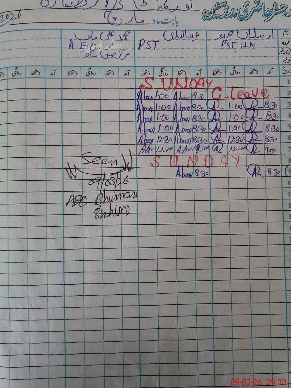 | CNIC | Full Name | Designation | R/C | Absence During Last Calender Month |