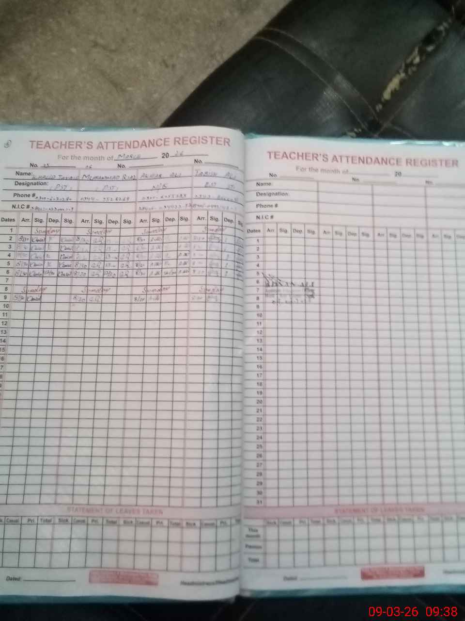 | CNIC | Full Name | Designation | R/C | Absence During Last Calender Month |