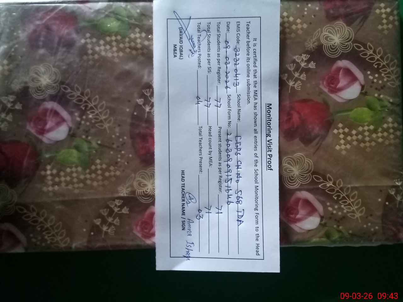 | Certified that this School was Inspected by the Undersigned MEA/DMO Today and the Information Stated Above is as Per Record. | |||||