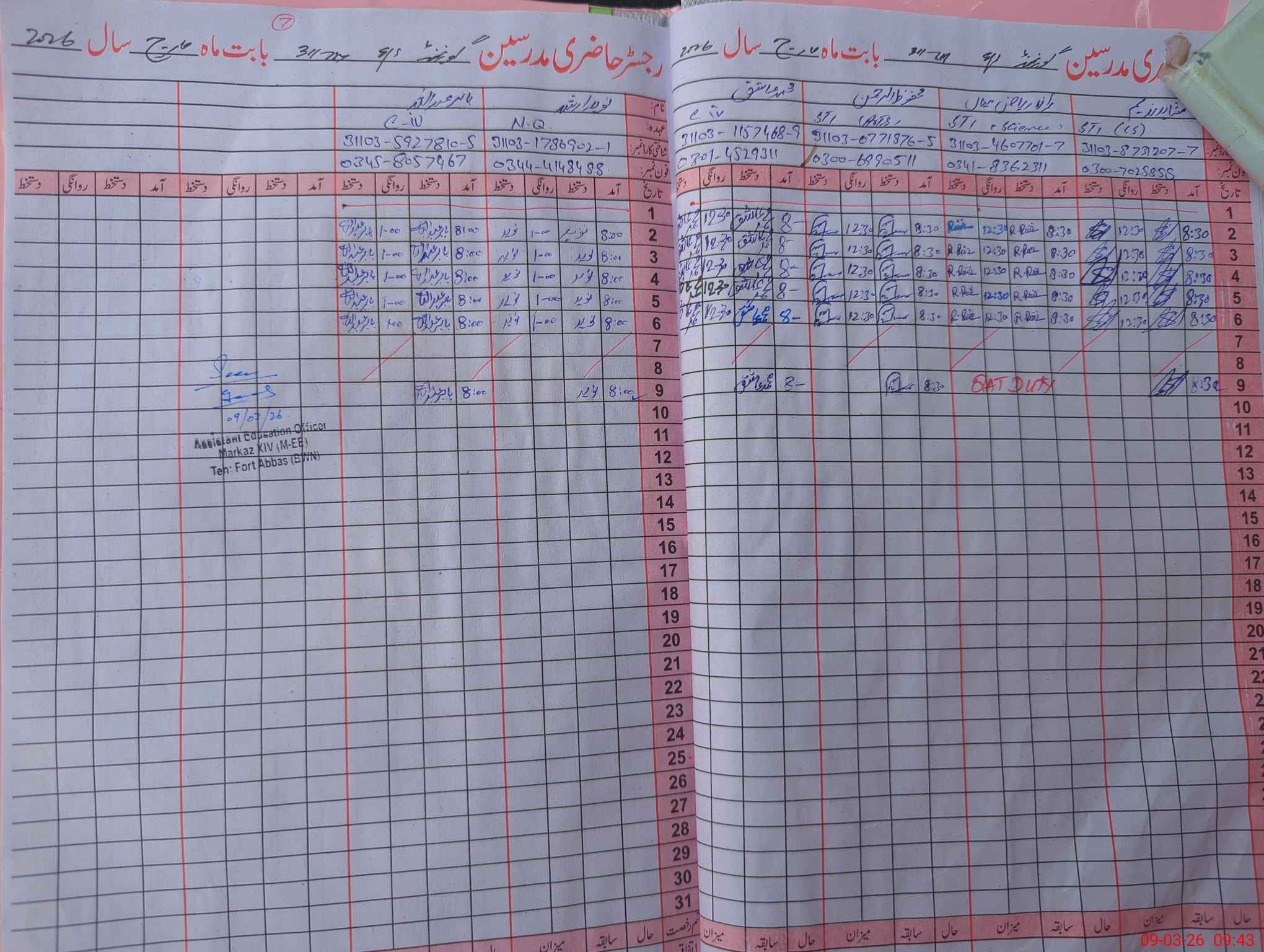 | Name: MTa**** Ar**** Designation: (School Headmaster's/Headmistress's) S.S.T.(Arts) Phone/Cell Number: 03**** |
