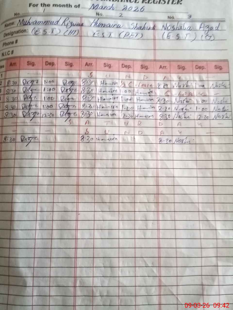 | Name: Mu**** Ri**** Designation: (School Headmaster's/Headmistress's) SST (Arts) Phone/Cell Number: 03**** |