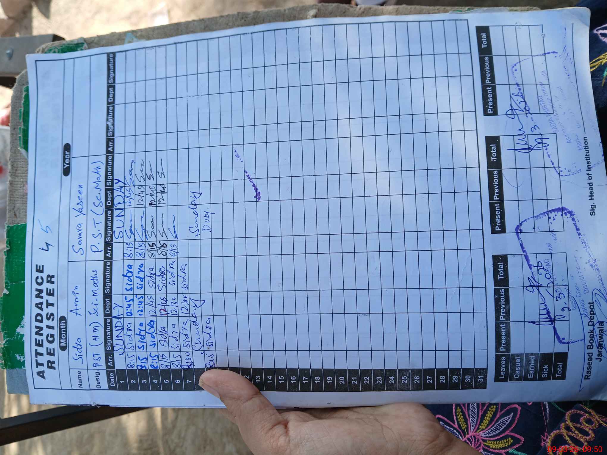 | Name: FA**** SA**** Designation: (School Headmaster's/Headmistress's) PST Phone/Cell Number: 03**** |