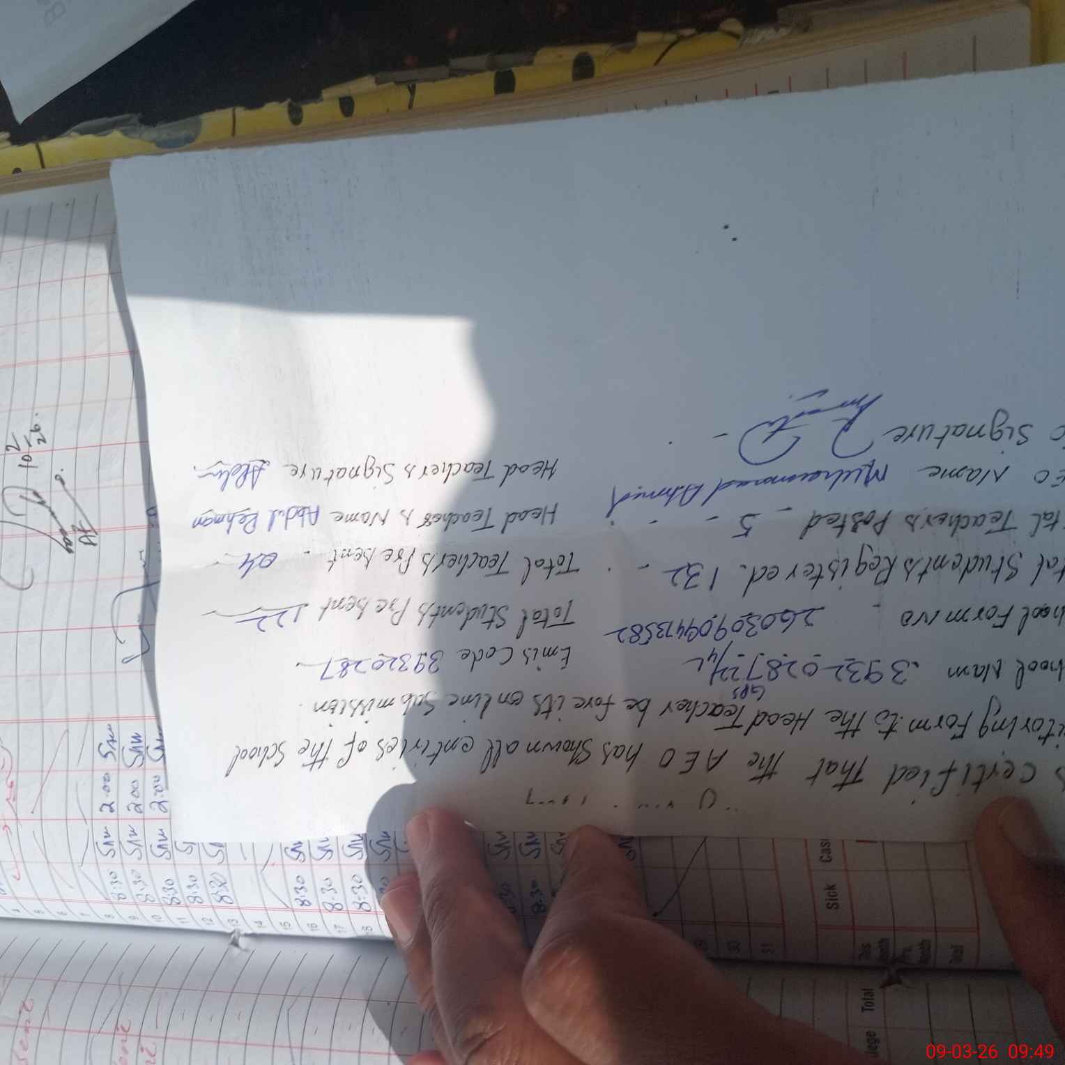 | Name: Ab**** Re**** Designation: (School Headmaster's/Headmistress's) PST Phone/Cell Number: 03**** |