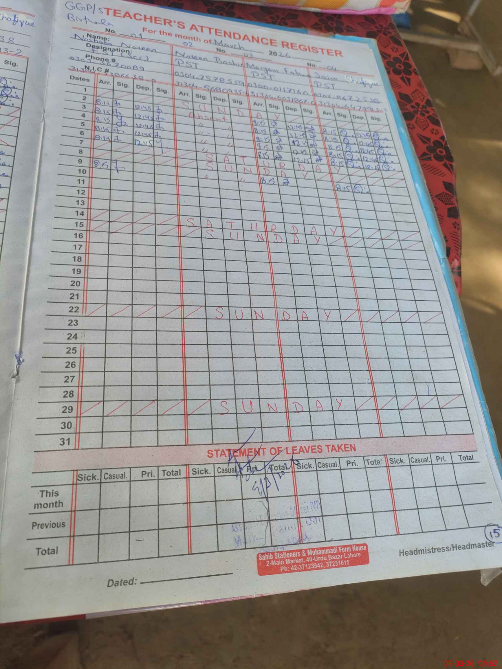 | 31**** | No**** Ba**** | ESE (Arts) | Contract | 0 | 0 | 0 | 0 | 0 | 0 | 0 | 0 | 0 | Absent (Un-Authorized) |
