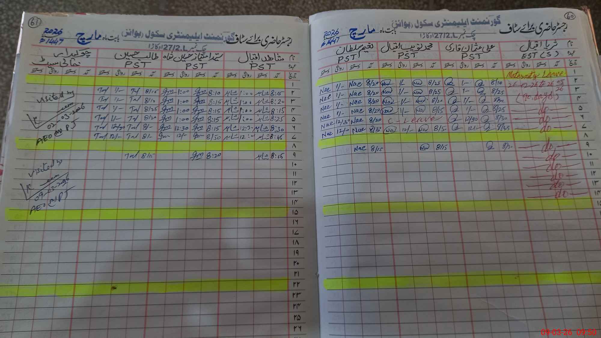 | Leave | Duty | Absent | Maternity | Medical | Ex- Pak |