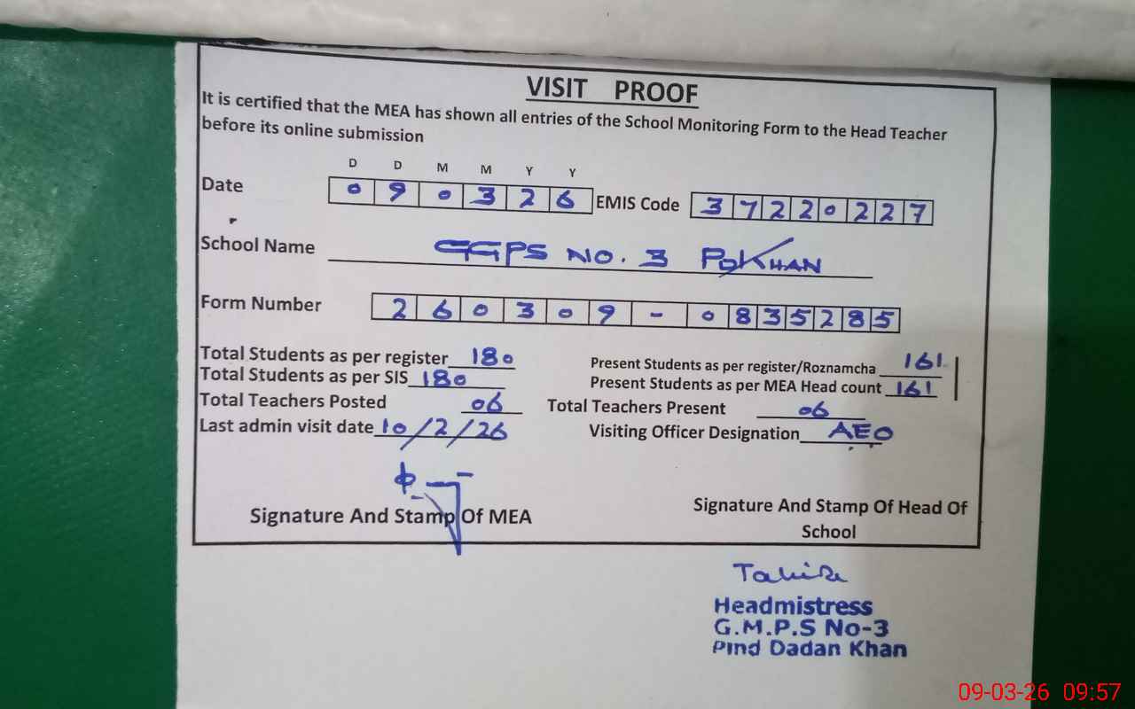 | EMIS Code: 37220227 | Name of School: GMPS NO. 3 P.D KHAN | |||