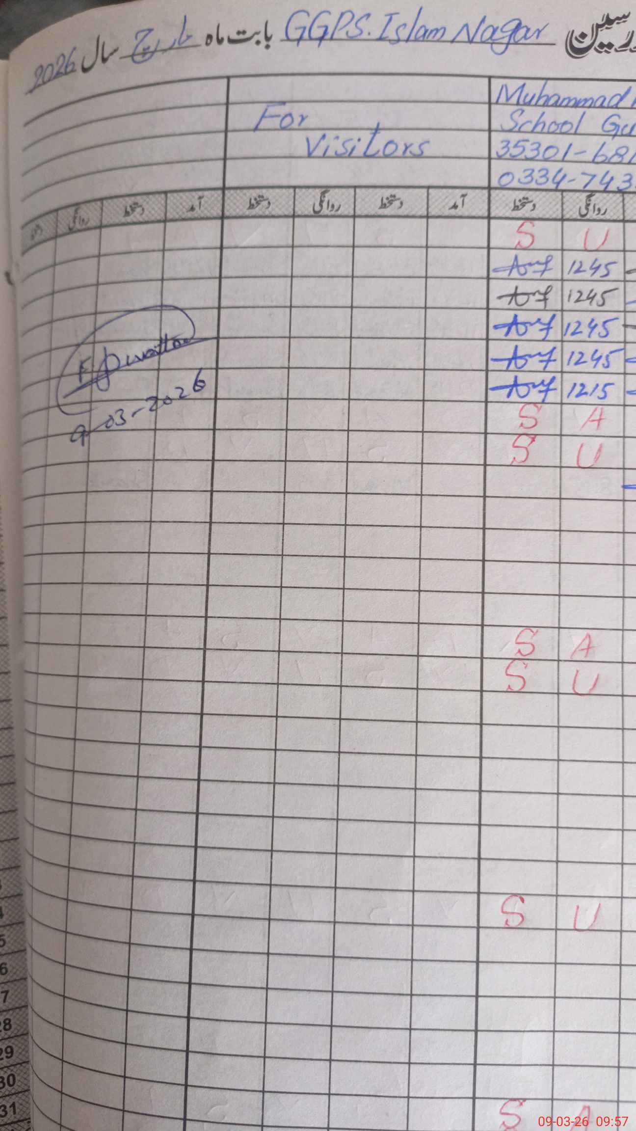 | Name: Sa**** Ya**** Designation: (School Headmaster's/Headmistress's) PST Phone/Cell Number: 03**** |