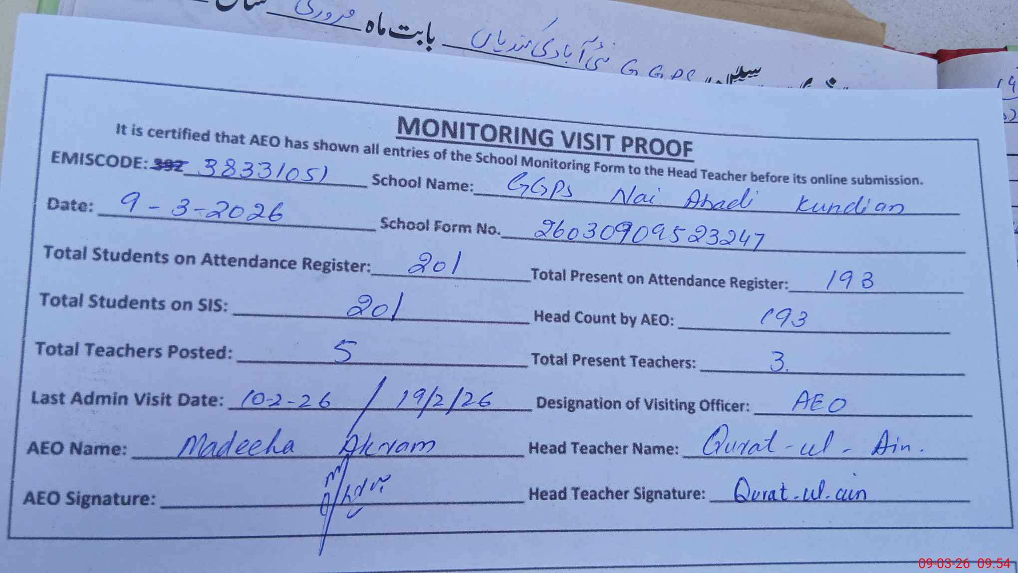 | EMIS Code: 38331051 | Name of School: GGPS NAI ABADI KUNDIAN | |||