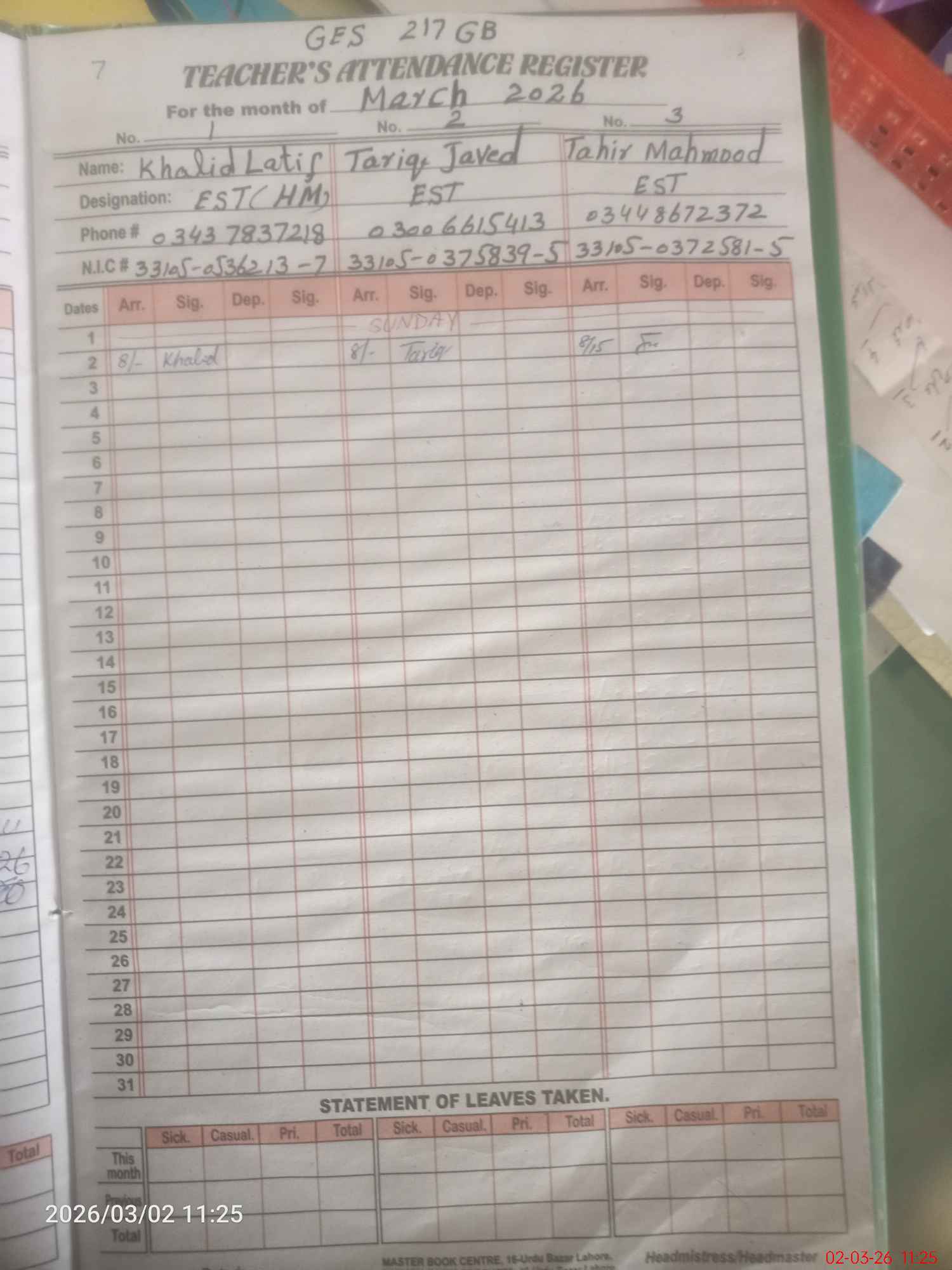 | Name: MU**** AA**** AF**** Designation: (School Headmaster's/Headmistress's) SST (GENERAL) Phone/Cell Number: 03**** |