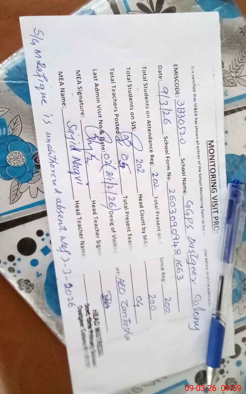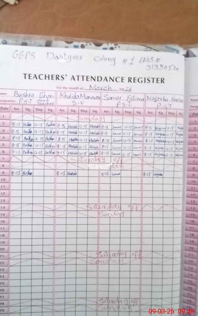 | EMIS Code: 31330520 | Name of School: GGPS DASTGEER COLONY NO. 1 | |||