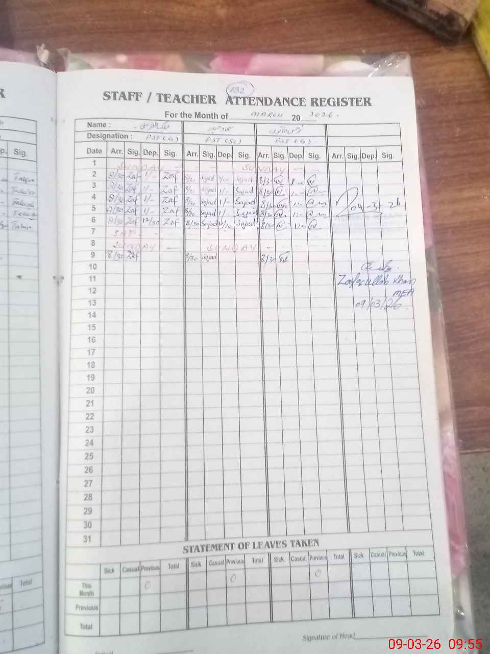 | 38**** | Mu**** Za**** Ab**** Sh**** | SST Science | Regular | 0 | 0 | 0 | 0 | 0 | 0 | 0 | 0 | 0 | Exam Duty |