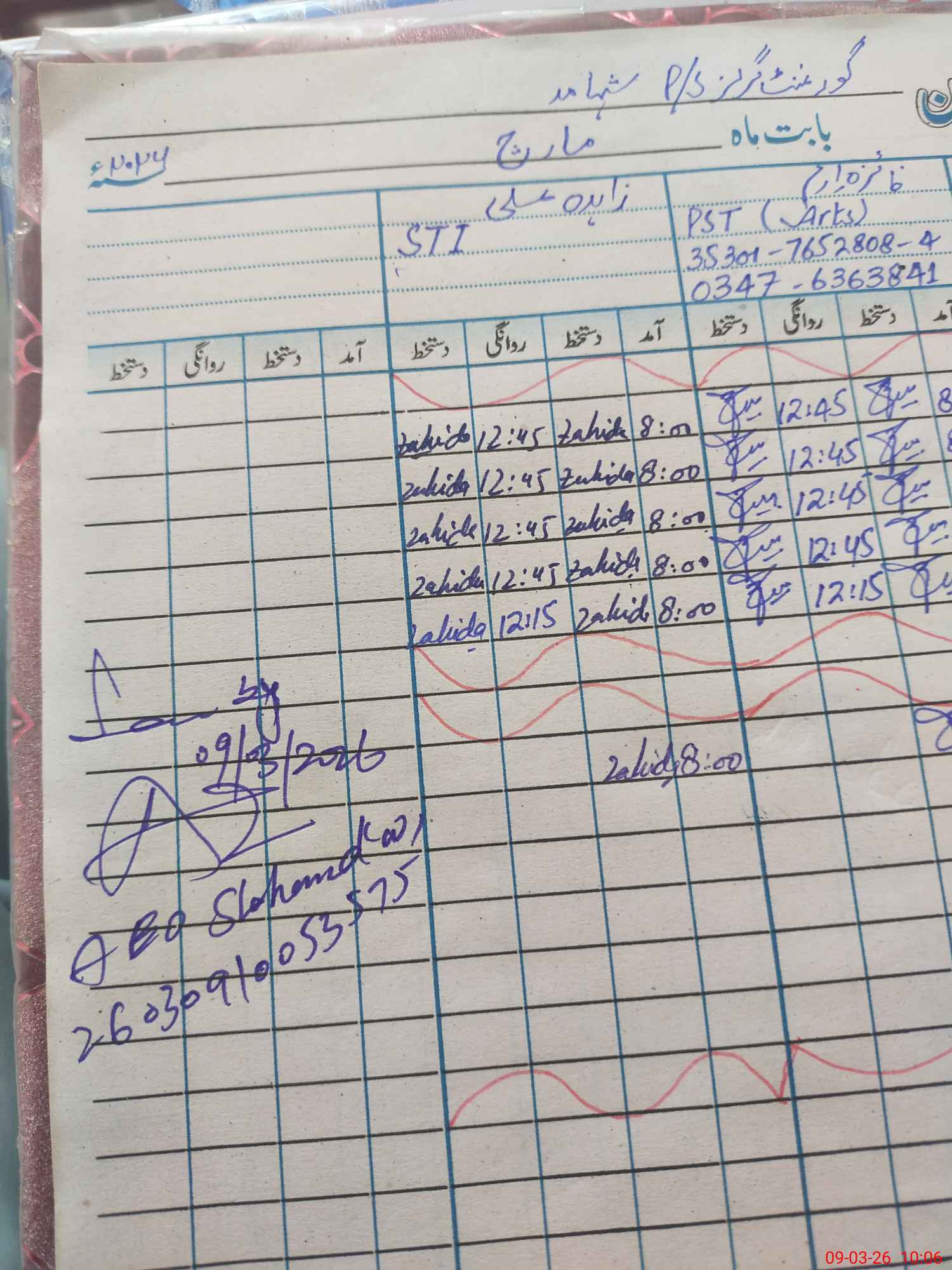 | Name: SA**** SA**** Designation: (School Headmaster's/Headmistress's) PST Phone/Cell Number: 03**** |