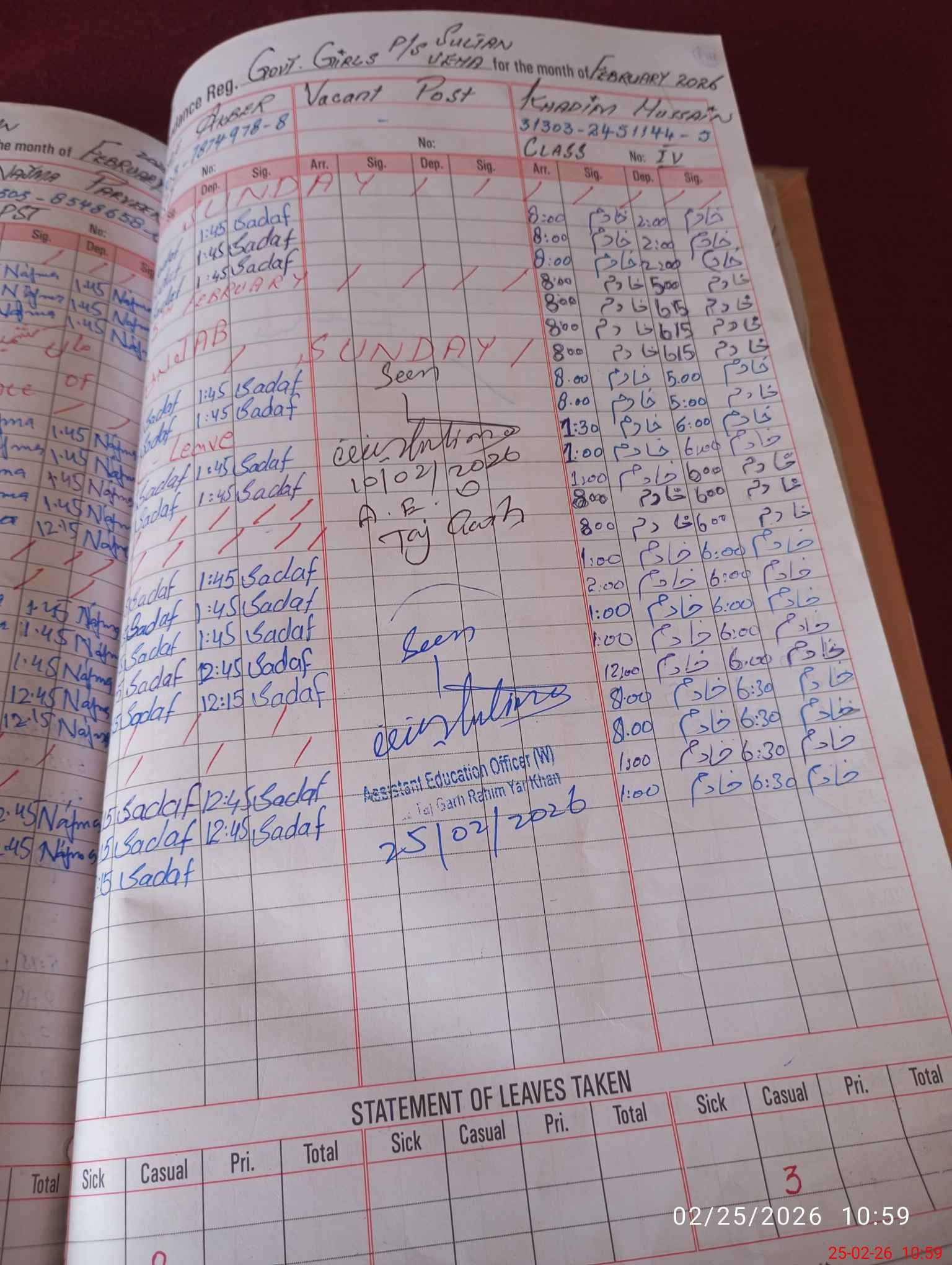 | Name: Za**** Am**** Designation: (School Headmaster's/Headmistress's) PST Phone/Cell Number: 03**** |