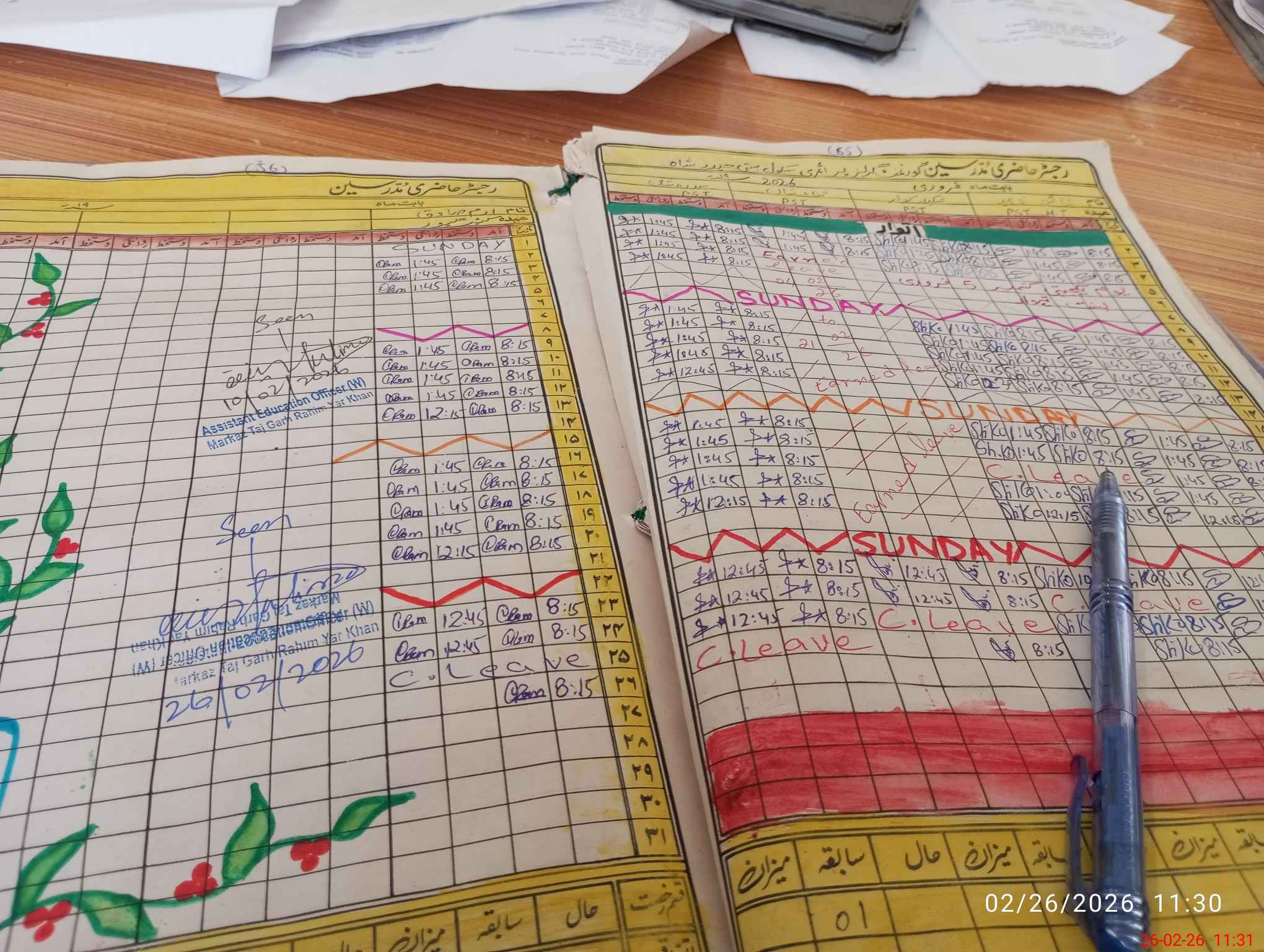| CNIC | Full Name | Designation | R/C | Absence During Last Calender Month |
