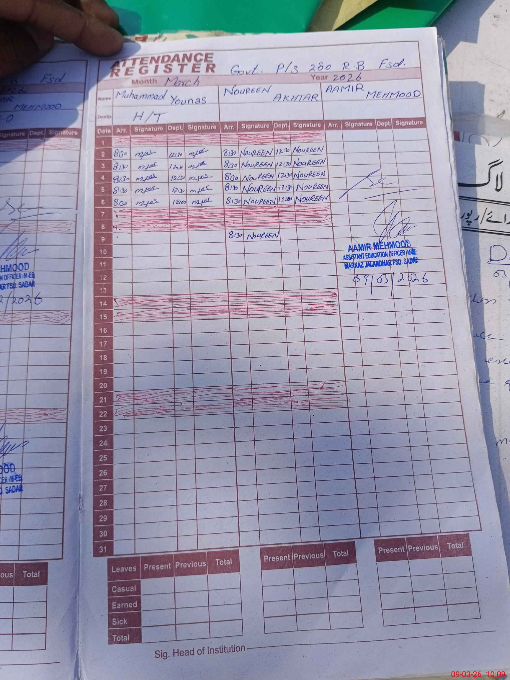 | Attendance Register | Head Teacher | MEA with School | Visit Proof |