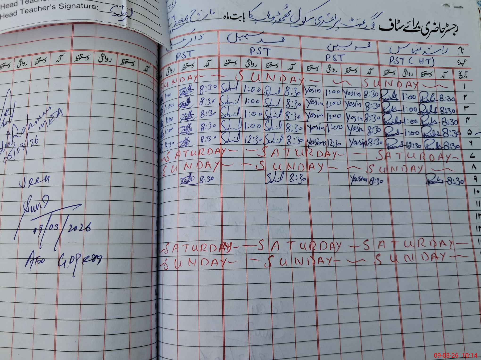 | Monitoring Date: 09-03-2026 | Start Time: 09-03-2026 09:55 AM | End Time: 09-03-2026 10:15 AM | Name of MEA: Sa**** Ul**** | |