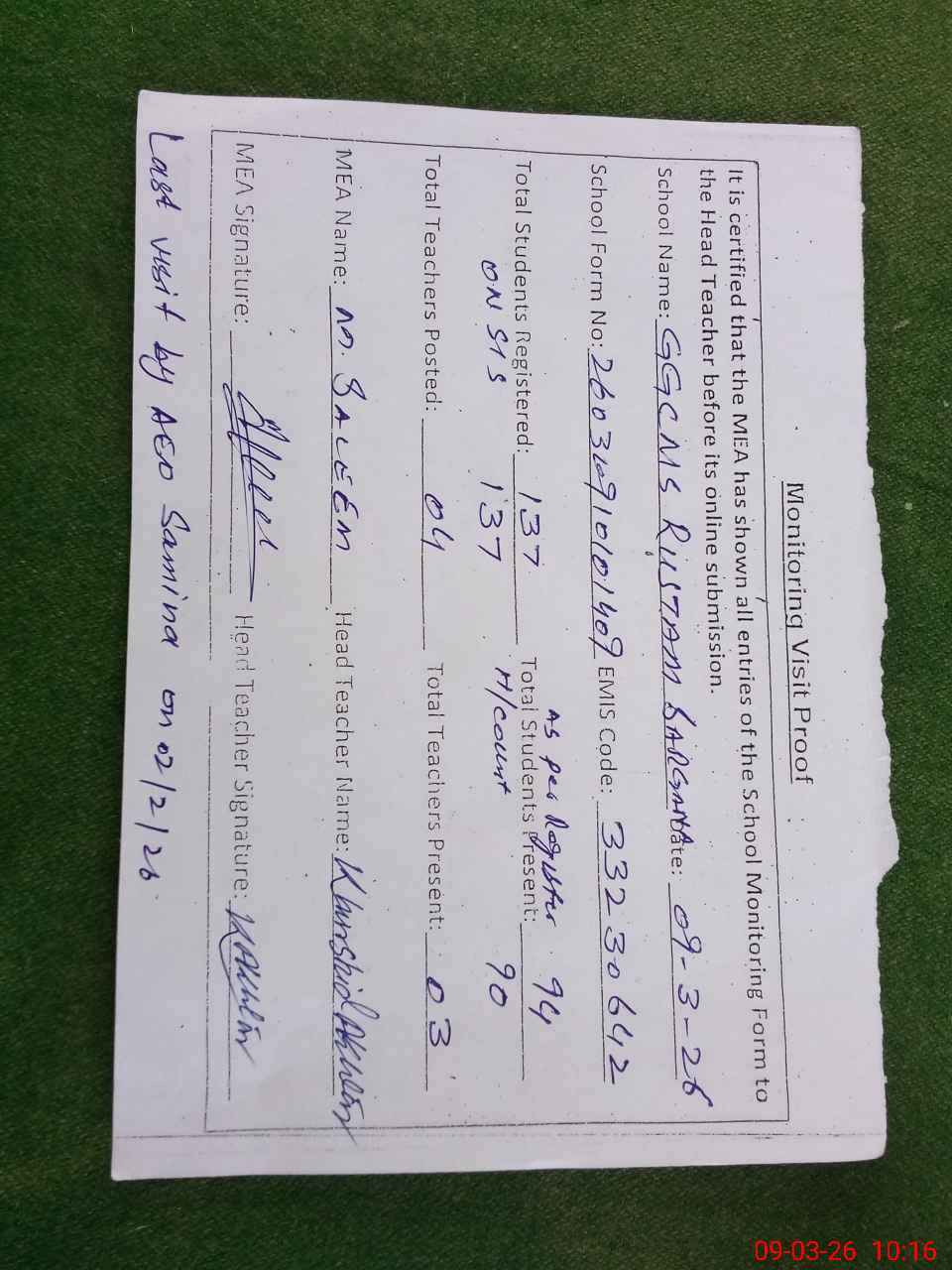 | EMIS Code: 33230642 | Name of School: GGCMS RUSTAM SARGANA NO 1 | |||