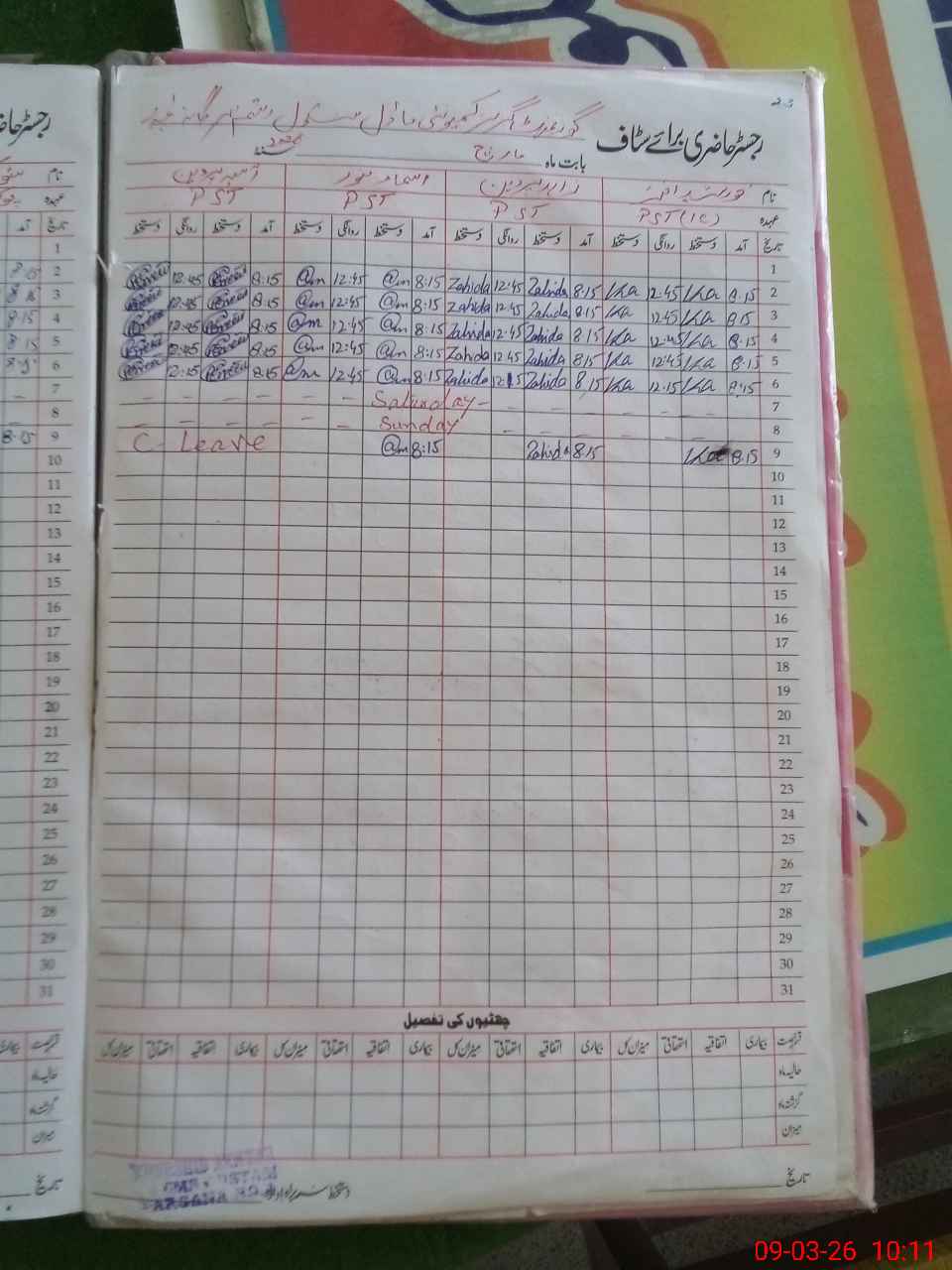 | Name: KH**** AK**** Designation: (School Headmaster's/Headmistress's) PST Phone/Cell Number: 03**** |