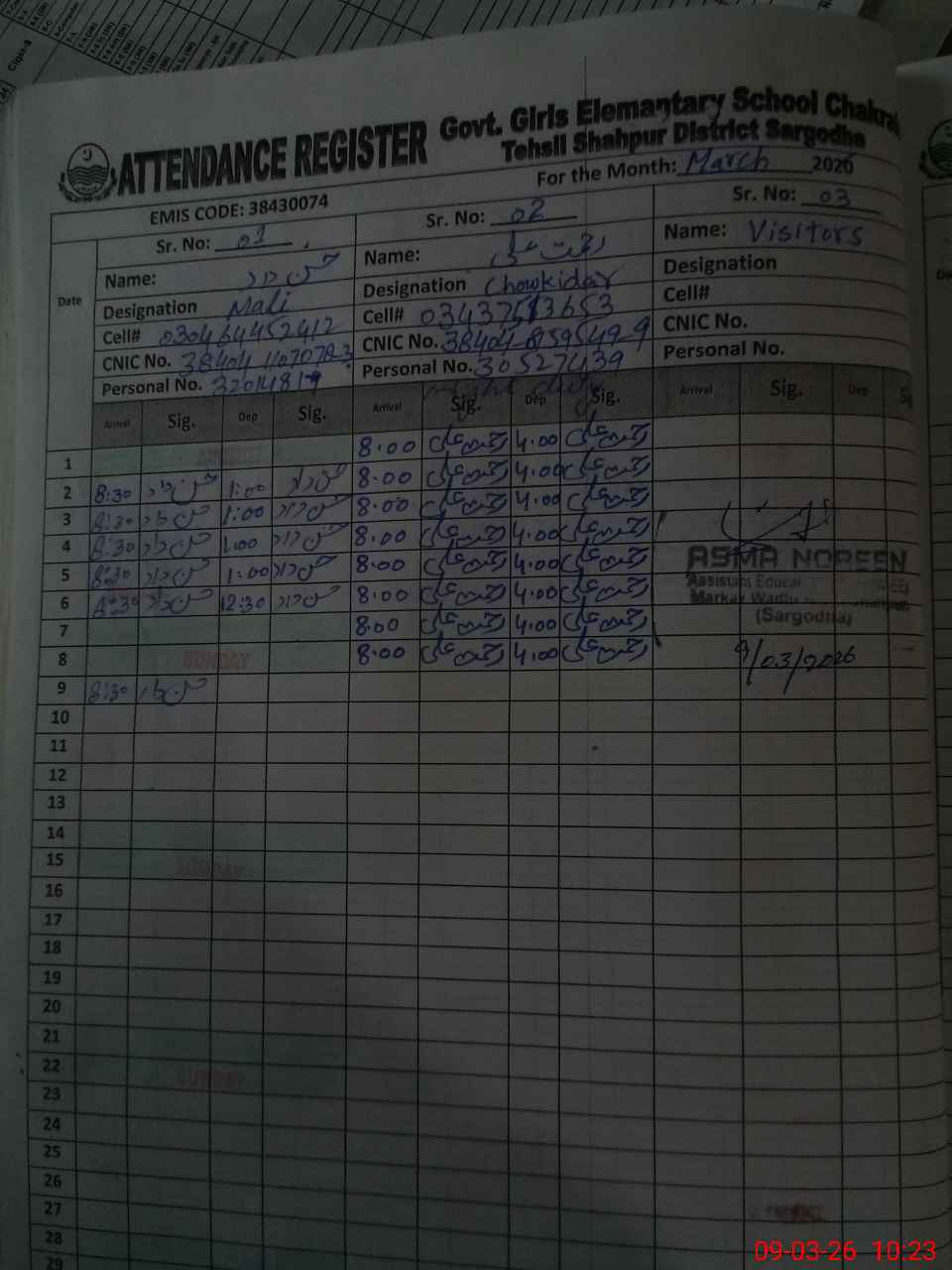 | Name: Fo**** Pa**** Designation: (School Headmaster's/Headmistress's) SST (Sc) Phone/Cell Number: 03**** |