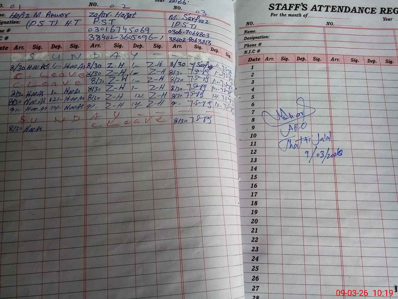 | Name: HA**** MU**** AN**** Designation: (School Headmaster's/Headmistress's) PTC/JV Phone/Cell Number: 03**** |