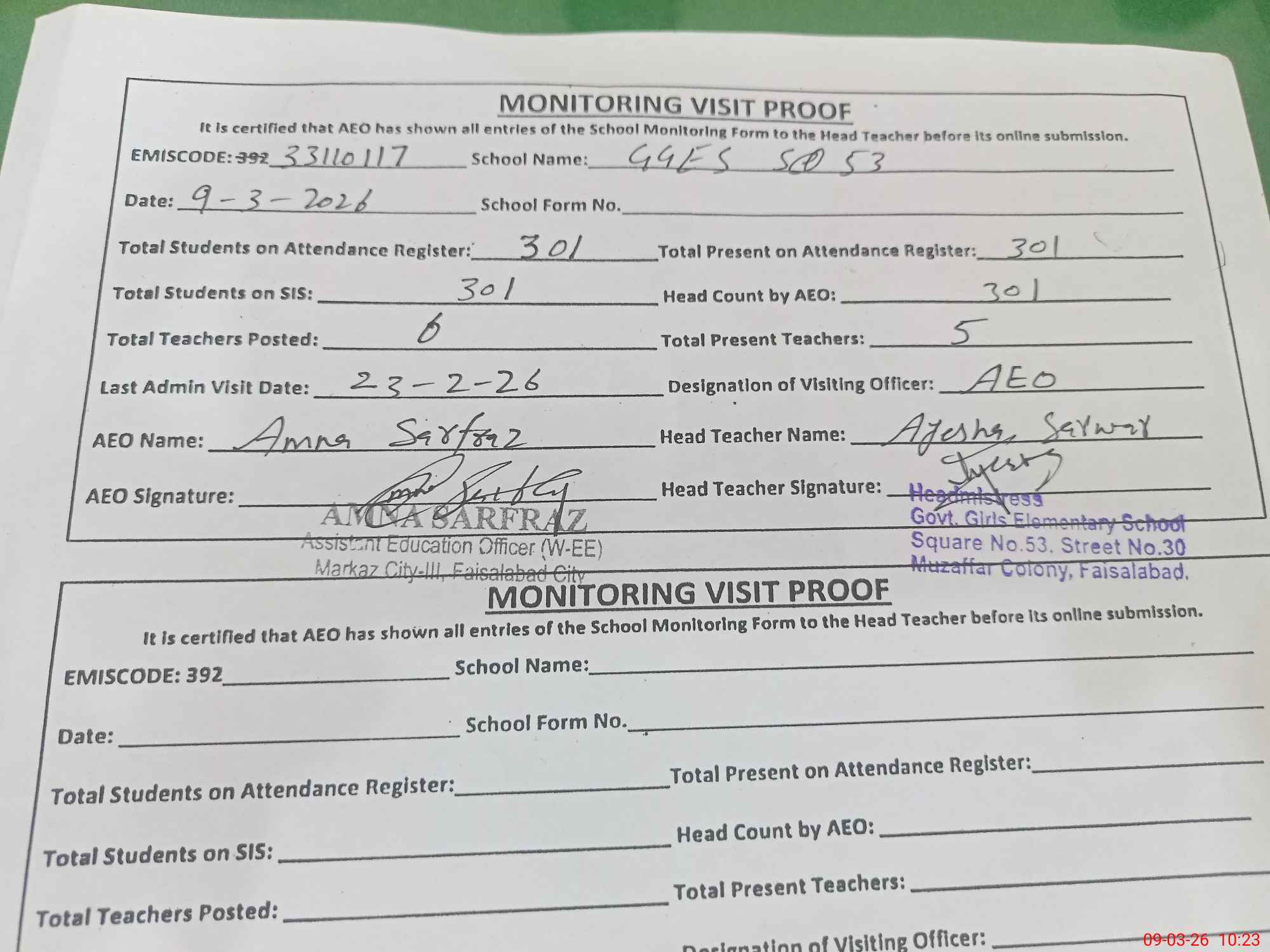 | EMIS Code: 33110117 | Name of School: GGES CHAK 222 RB SQ 53 ST. 30 | |||