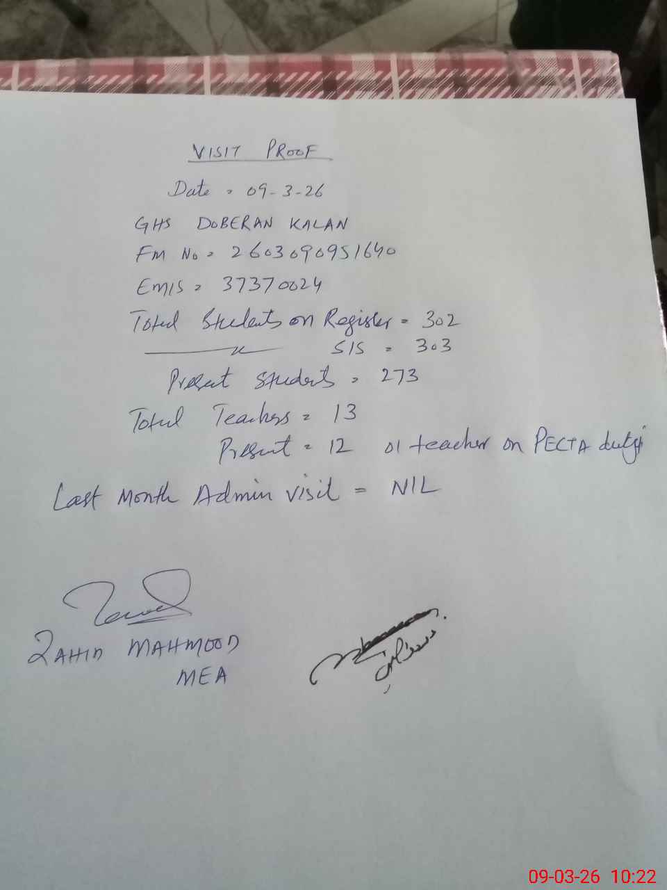 | EMIS Code: 37370024 | Name of School: GHS DOBERAN KALAN | |||