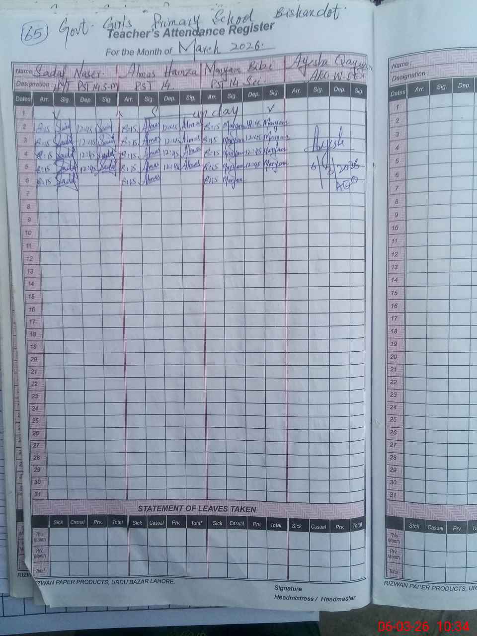 | District: RAWALPINDI | Tehsil: KALLAR SYEDAN | Markaz: BESHANDOTE - FEMALE | Level: Primary | |