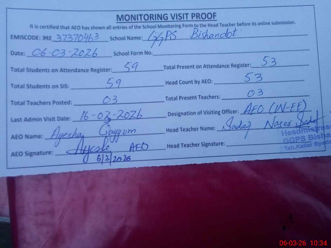 | EMIS Code: 37370463 | Name of School: GGPS BISHANDOT | |||
