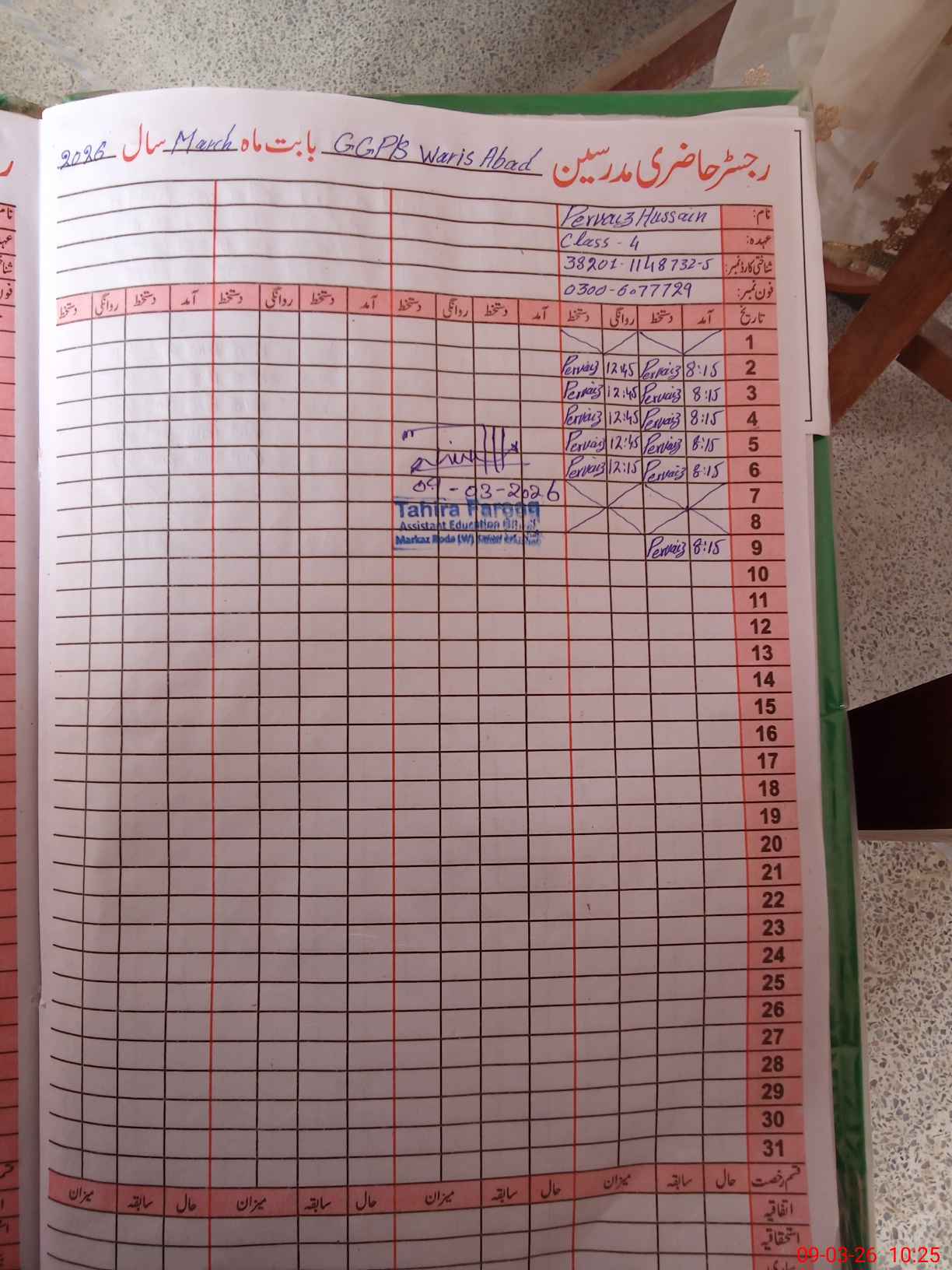 | Name: Sh**** Ak**** Designation: (School Headmaster's/Headmistress's) PST Phone/Cell Number: 03**** |