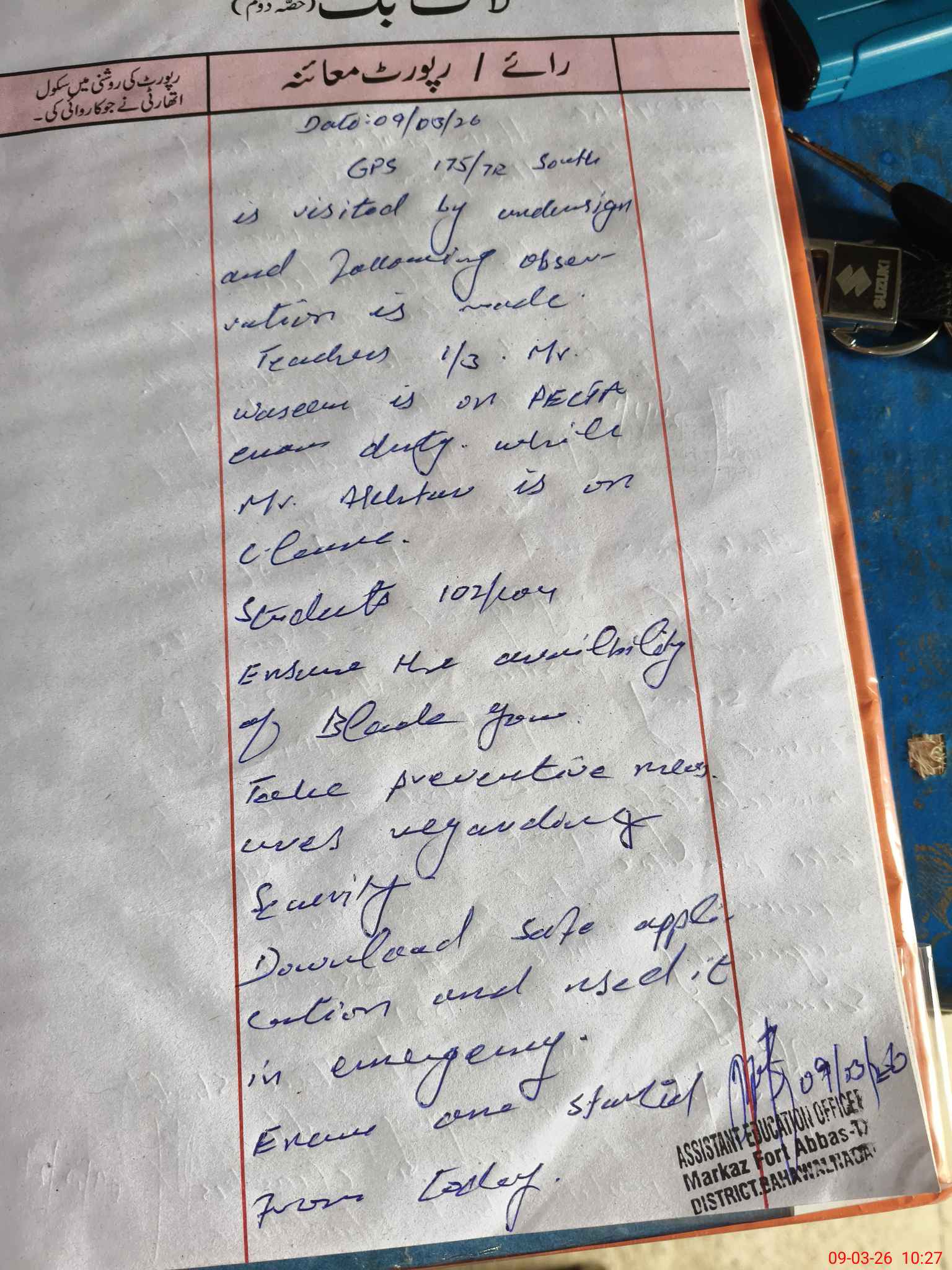 | EMIS Code: 31130151 | Name of School: GPS CHAK NO 175 7R SOUTH | |||