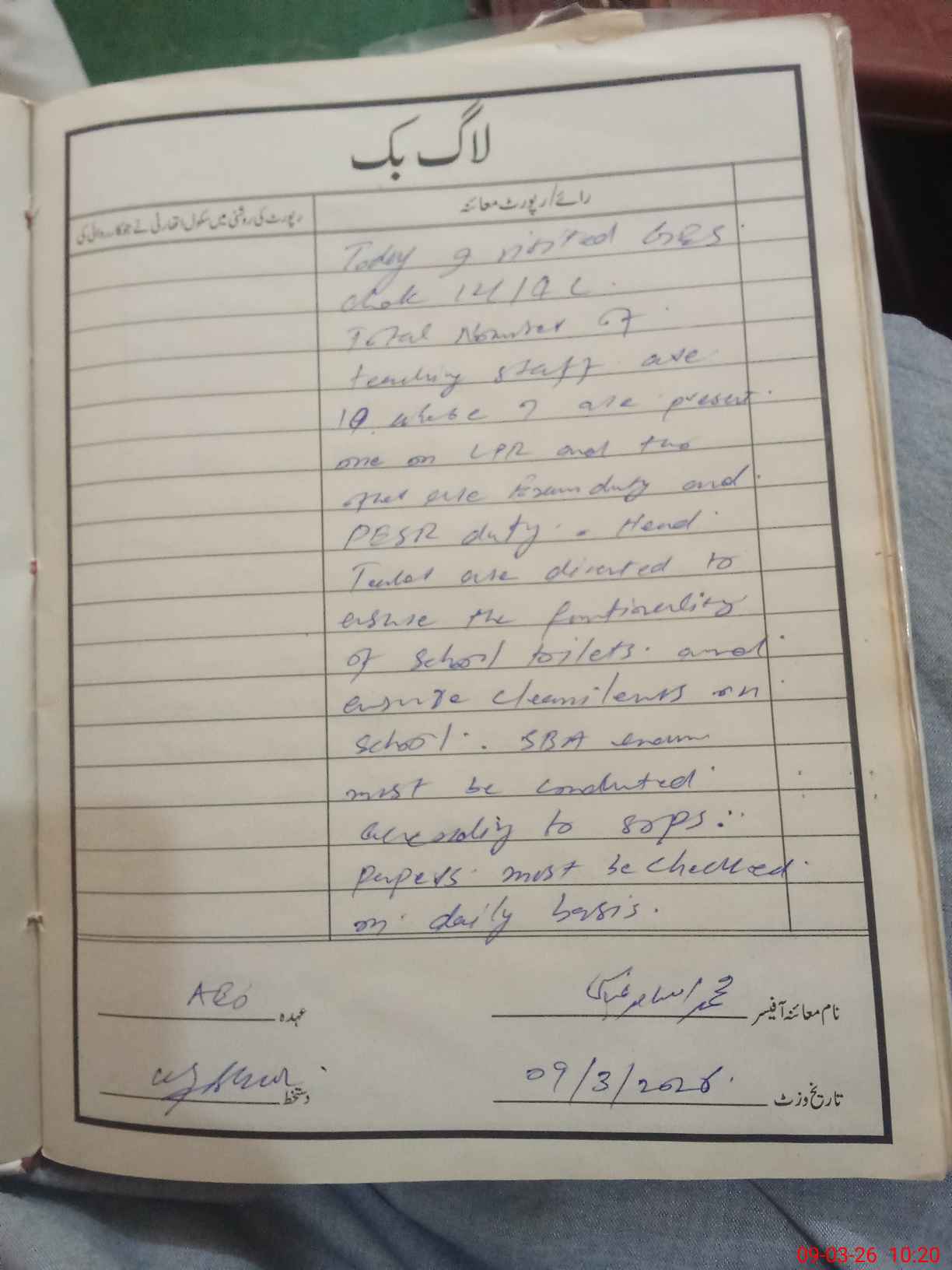 | Certified that this School was Inspected by the Undersigned MEA/DMO Today and the Information Stated Above is as Per Record. | |||||