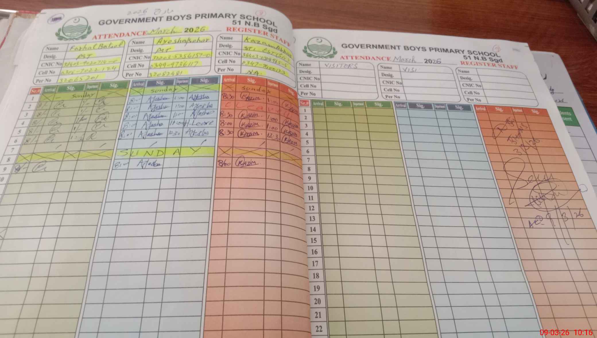 | Name: Za**** Iq**** Designation: (School Headmaster's/Headmistress's) PST Phone/Cell Number: 03**** |