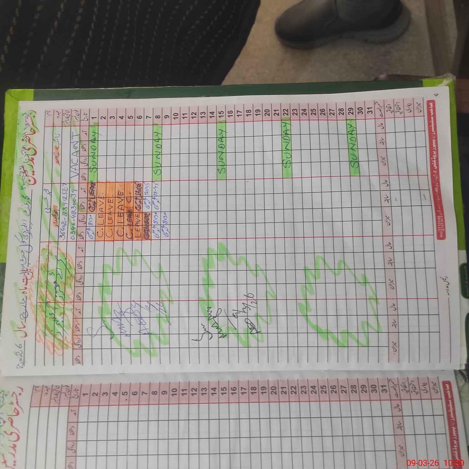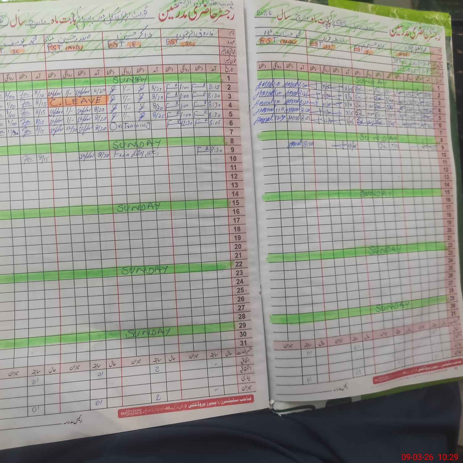 | CNIC | Full Name | Designation | R/C | Absence During Last Calender Month |