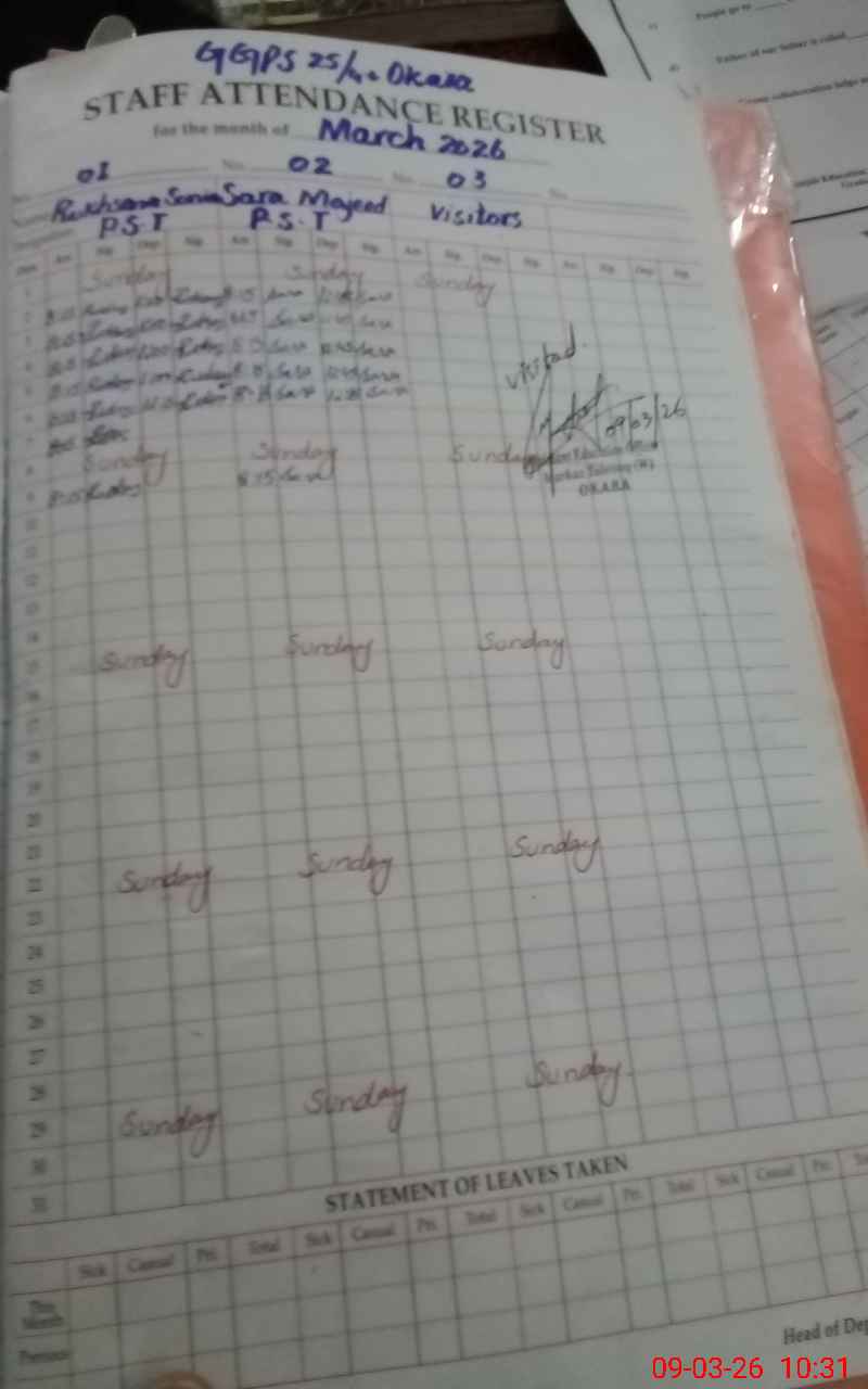 | District: OKARA | Tehsil: OKARA | Markaz: TABROOQ - FEMALE | Level: Primary | |