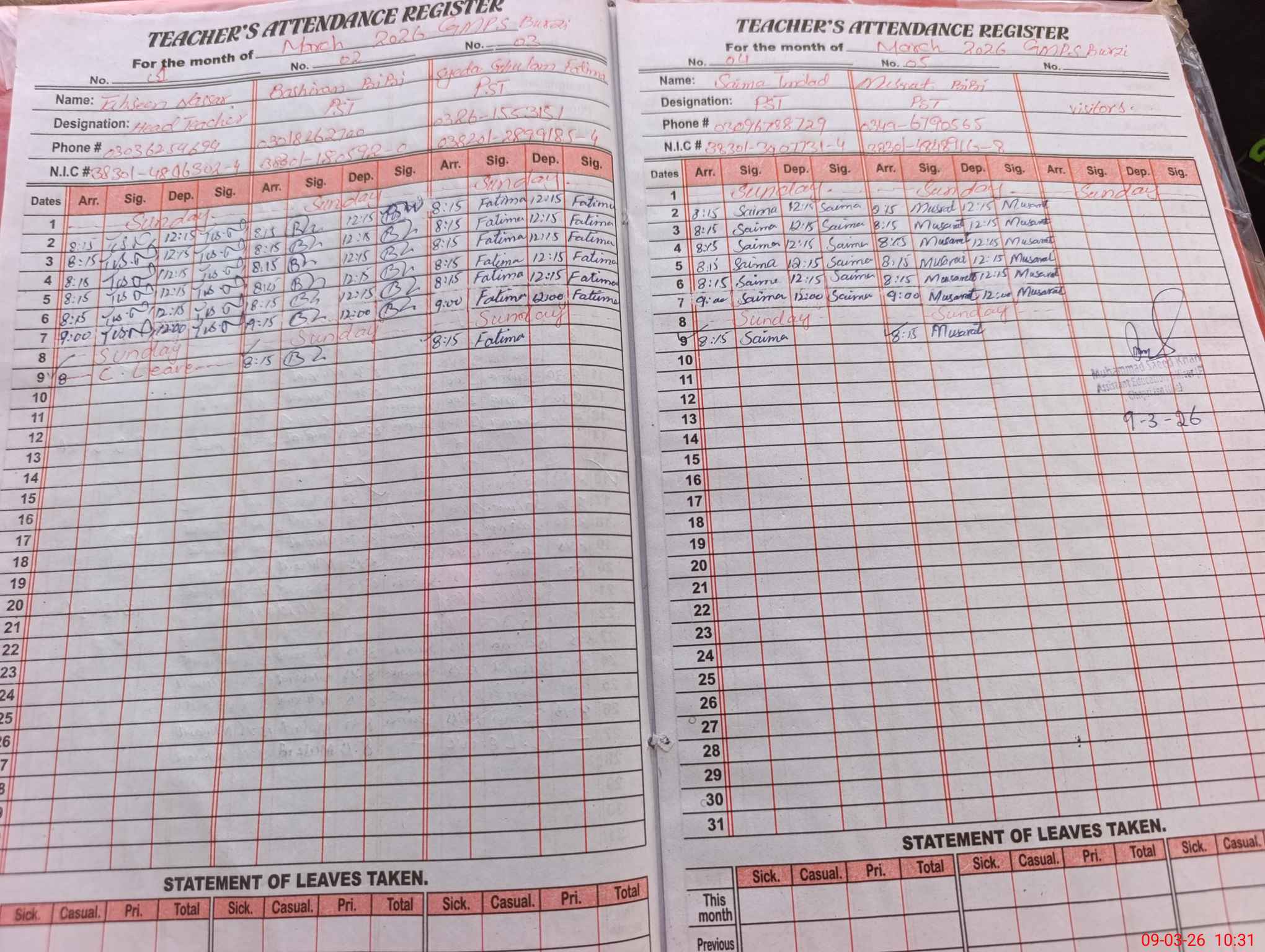 | Name: Te**** Na**** Designation: (School Headmaster's/Headmistress's) PST/PTC/JV Phone/Cell Number: 03**** |
