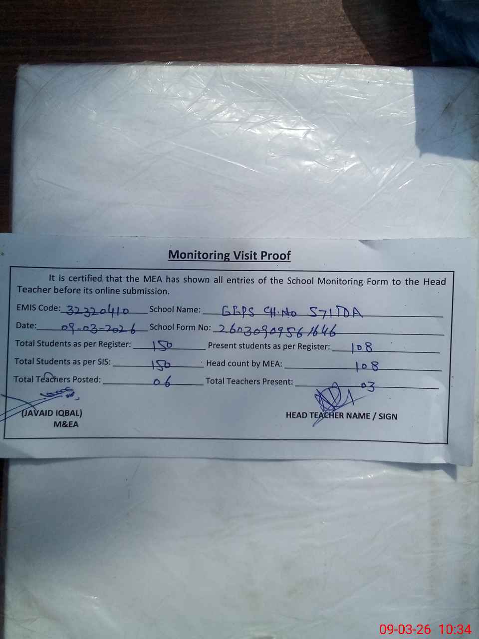 | EMIS Code: 32320410 | Name of School: GGPS CHAK NO. 571 TDA | |||