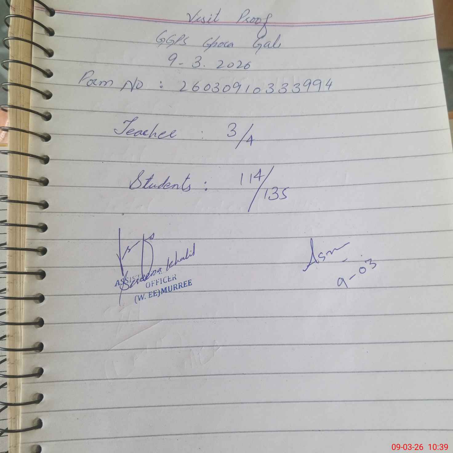| Name: As**** Sa**** Designation: (School Headmaster's/Headmistress's) PST Phone/Cell Number: 03**** |