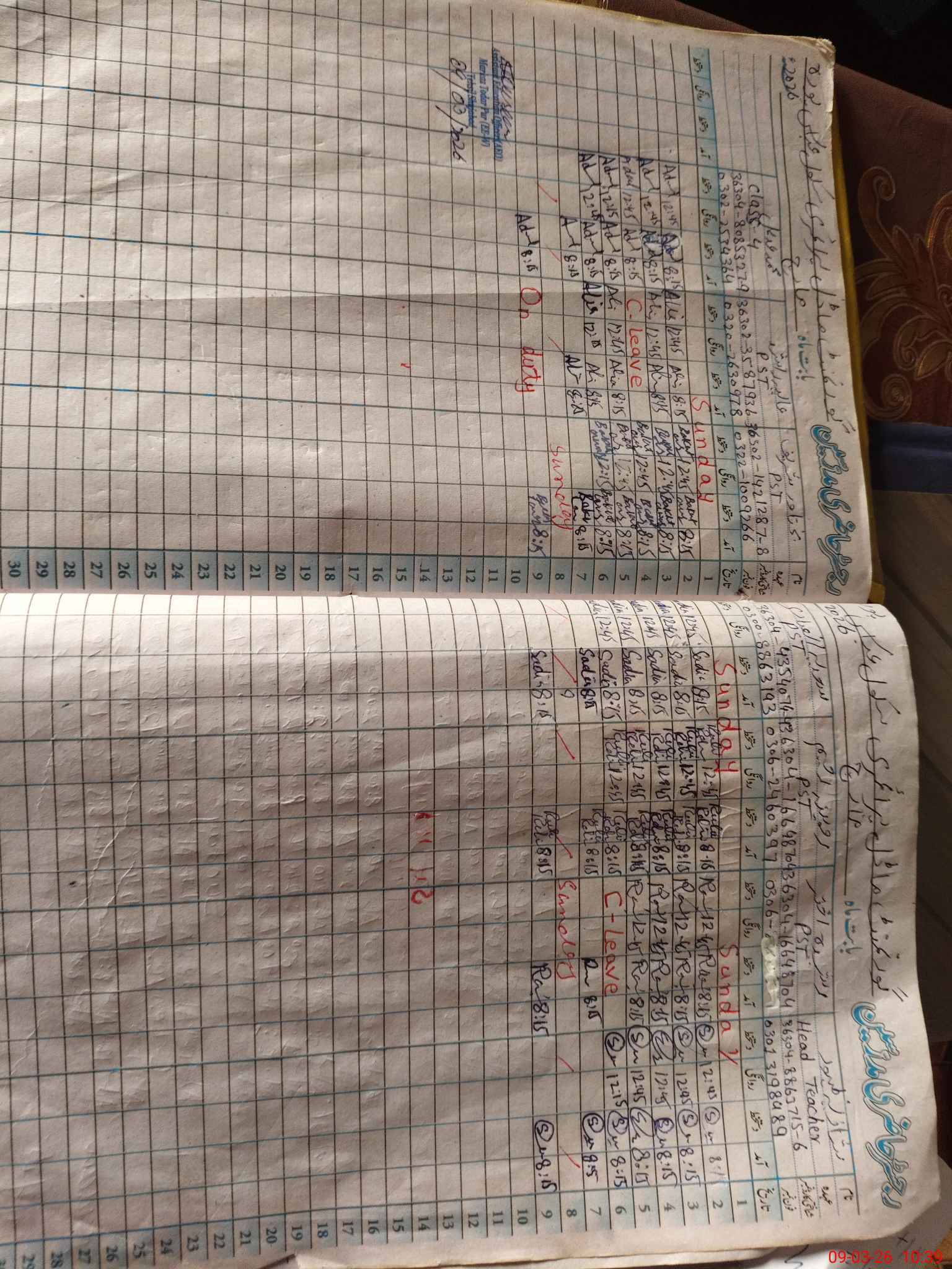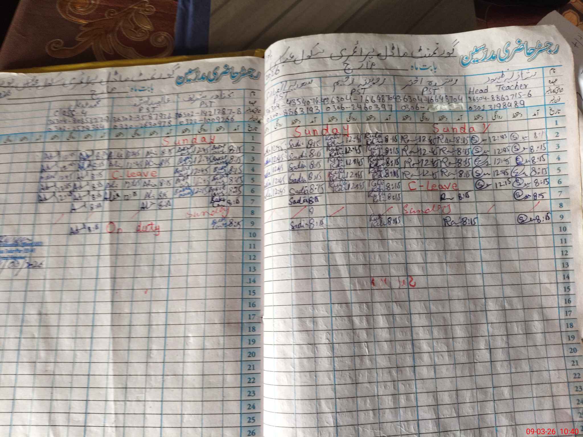 | Leave | Duty | Absent | Maternity | Medical | Ex- Pak |