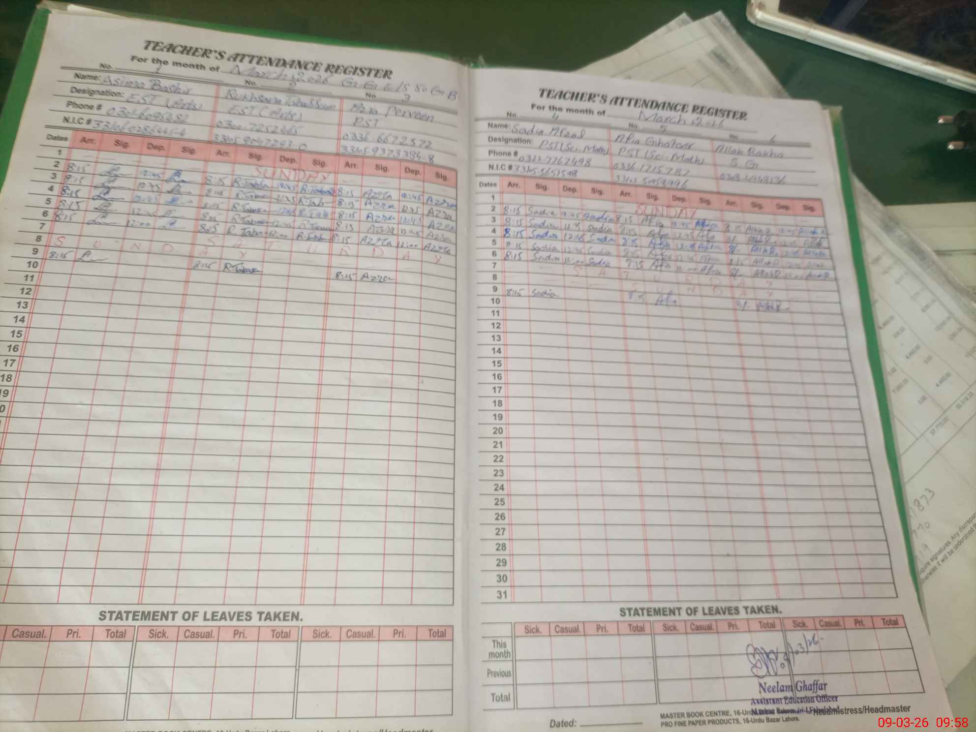 | Name: As**** Ba**** Designation: (School Headmaster's/Headmistress's) EST (Art) Phone/Cell Number: 03**** |